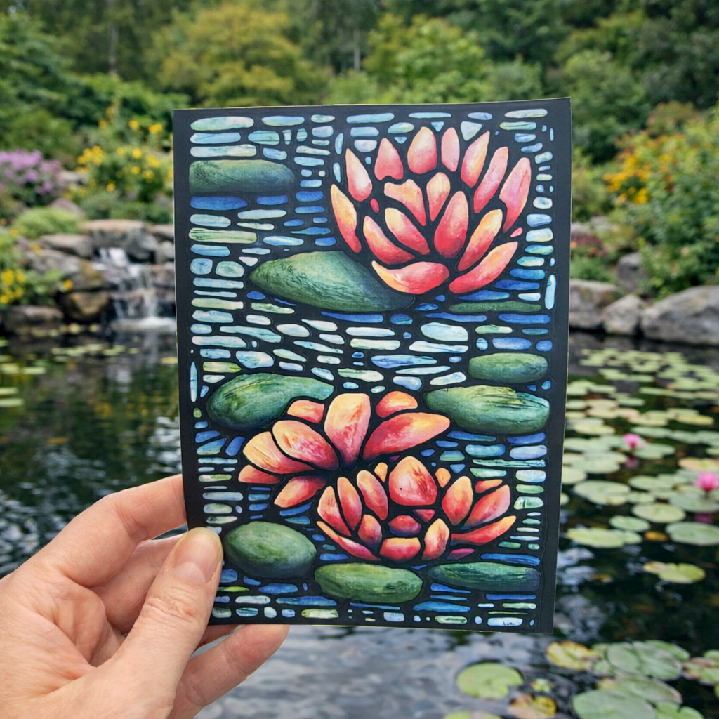 I create nature-inspired acrylic paintings that look like stained-glass. Then I take these images and hand make jewelry from the designs.