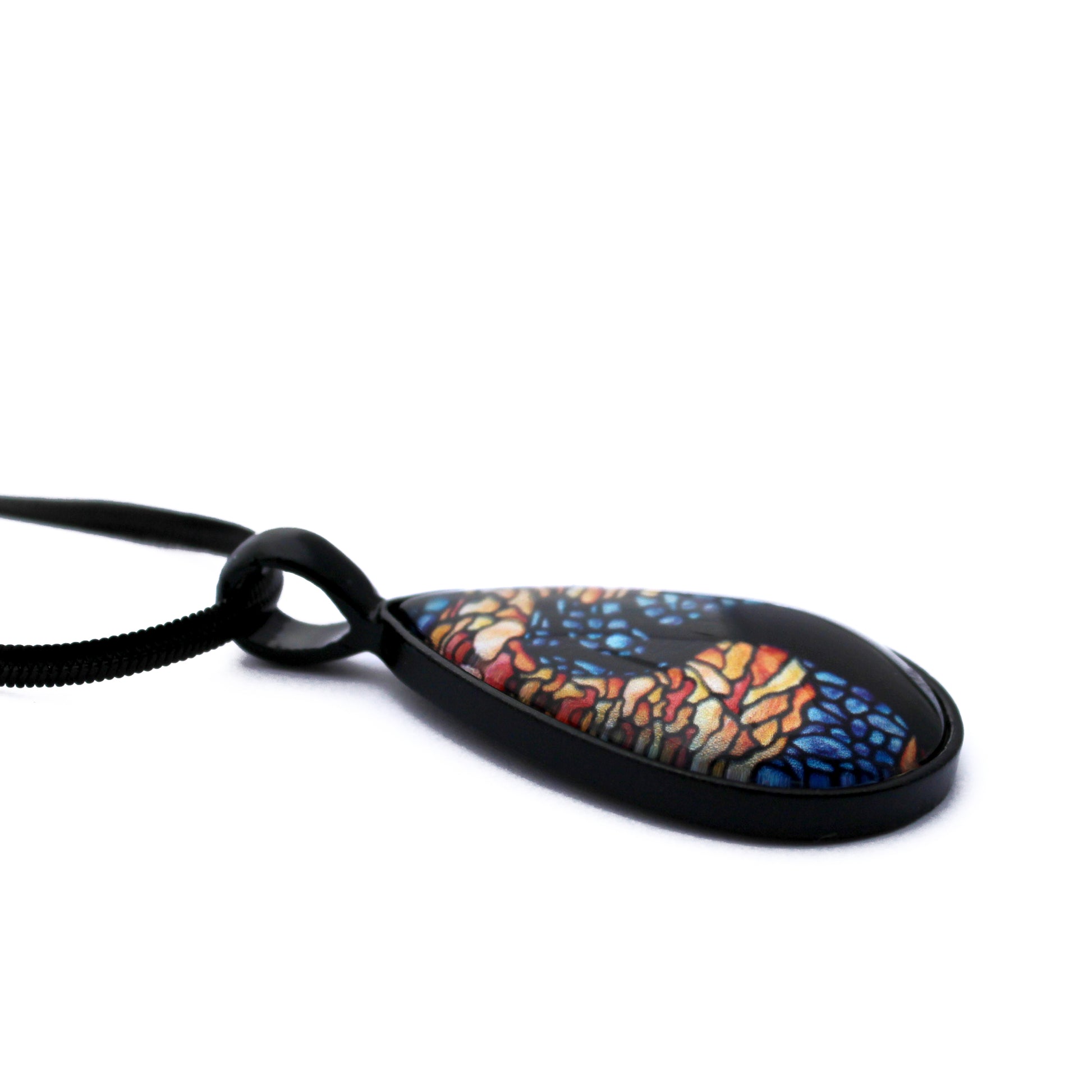 Handmade autumn tree teardrop glass necklace featuring artwork from my original acrylic painting.