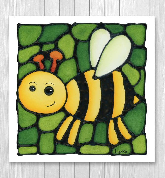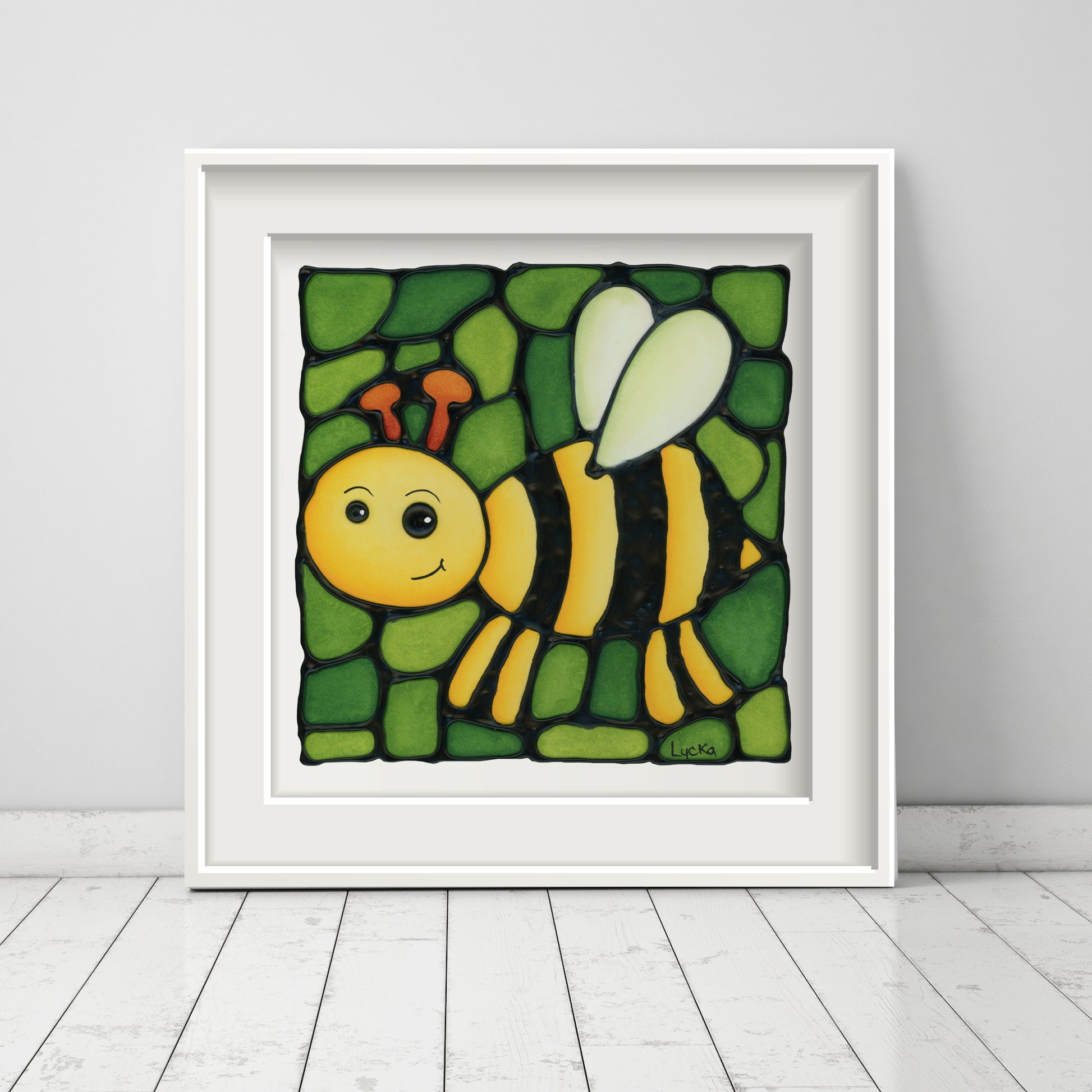Bumble bee wall art print featuring my original acrylic painting. A charming gift for nature lovers or garden enthusiasts.