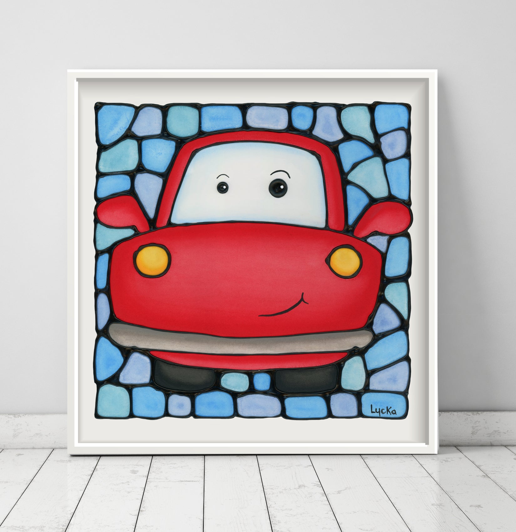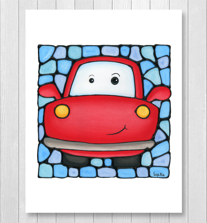 Car wall art print for a nursery or a kids' bedroom. Personalized print makes a great baby shower gift idea.