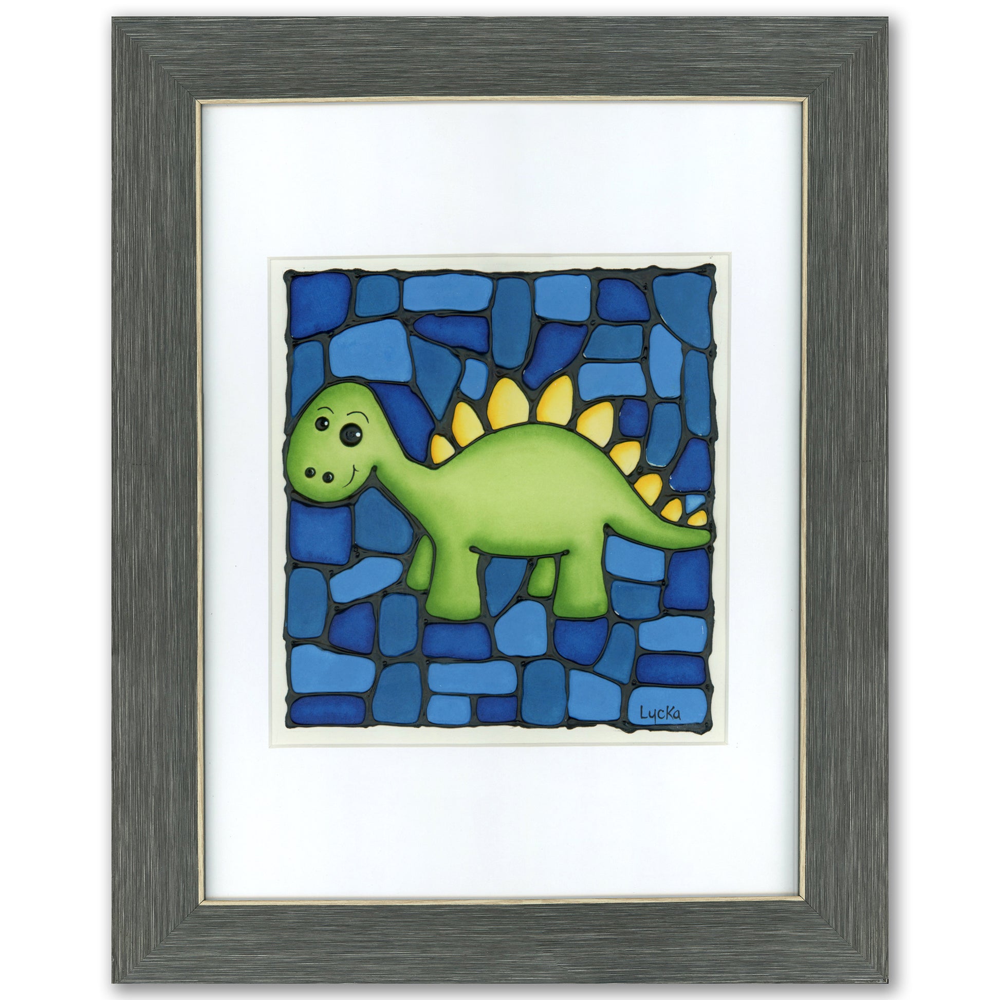 Stegosaurus Dinosaur Original Painting 14" x 17" Framed
