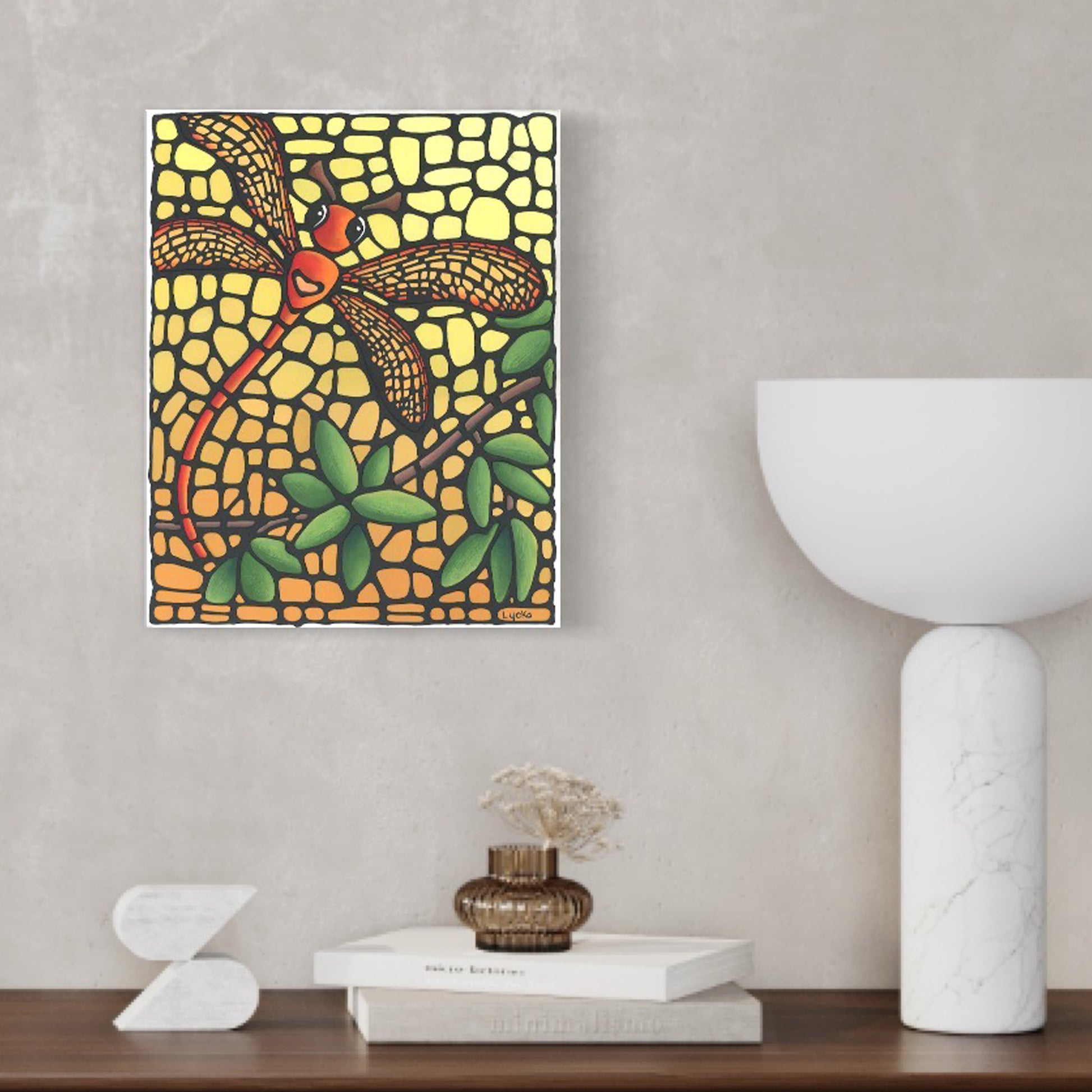 The dragonfly symbolizes a life filled with joy and happiness. The dragonfly is the emblem of peace and happiness. It represents our ability to transform and heal ourselves. Overcoming obstacles, balancing mind, body, and spirit in one beautiful piece of artwork for your home or office.