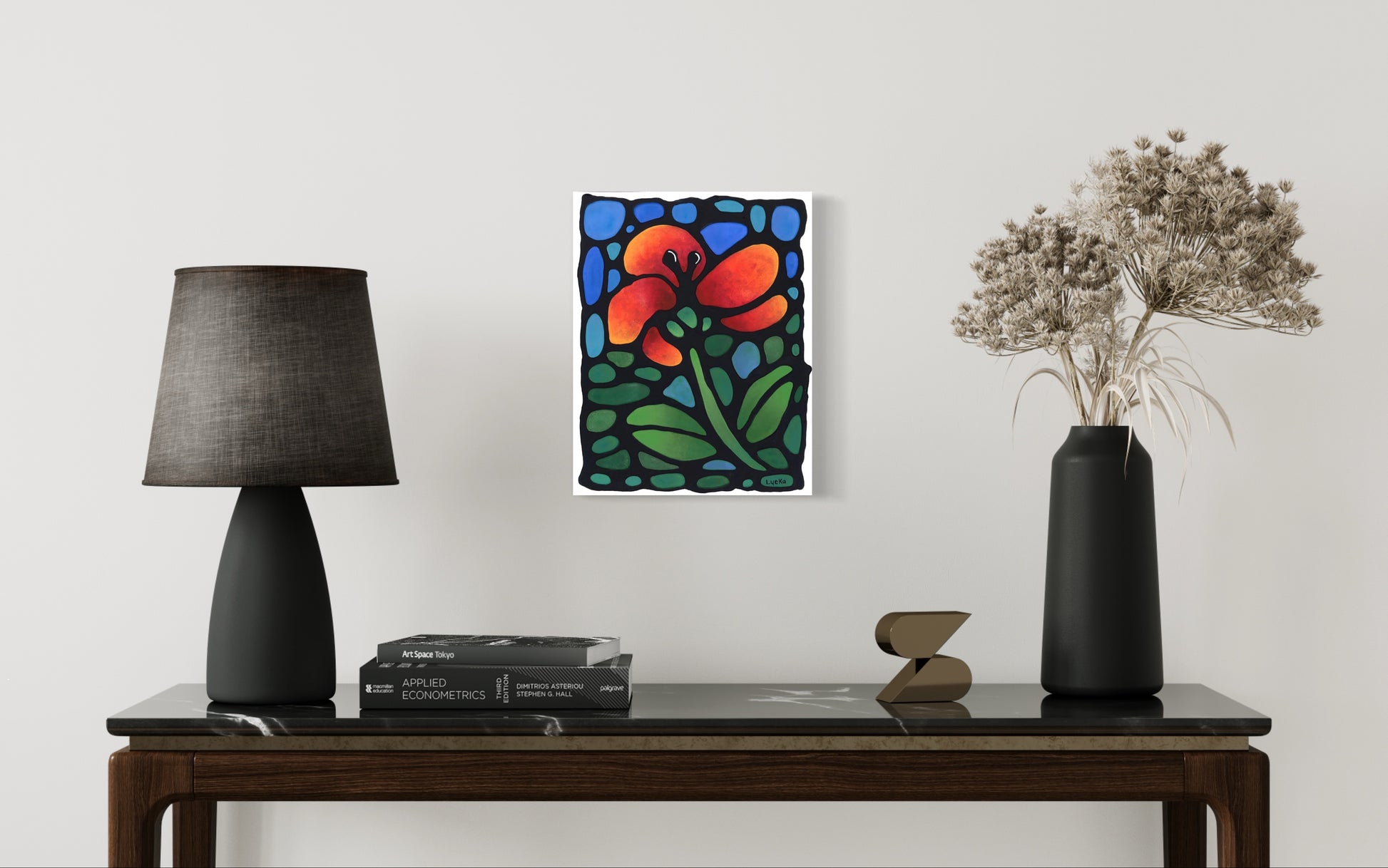 Poppy Flower Original Painting 9 x 12 inch Canvas