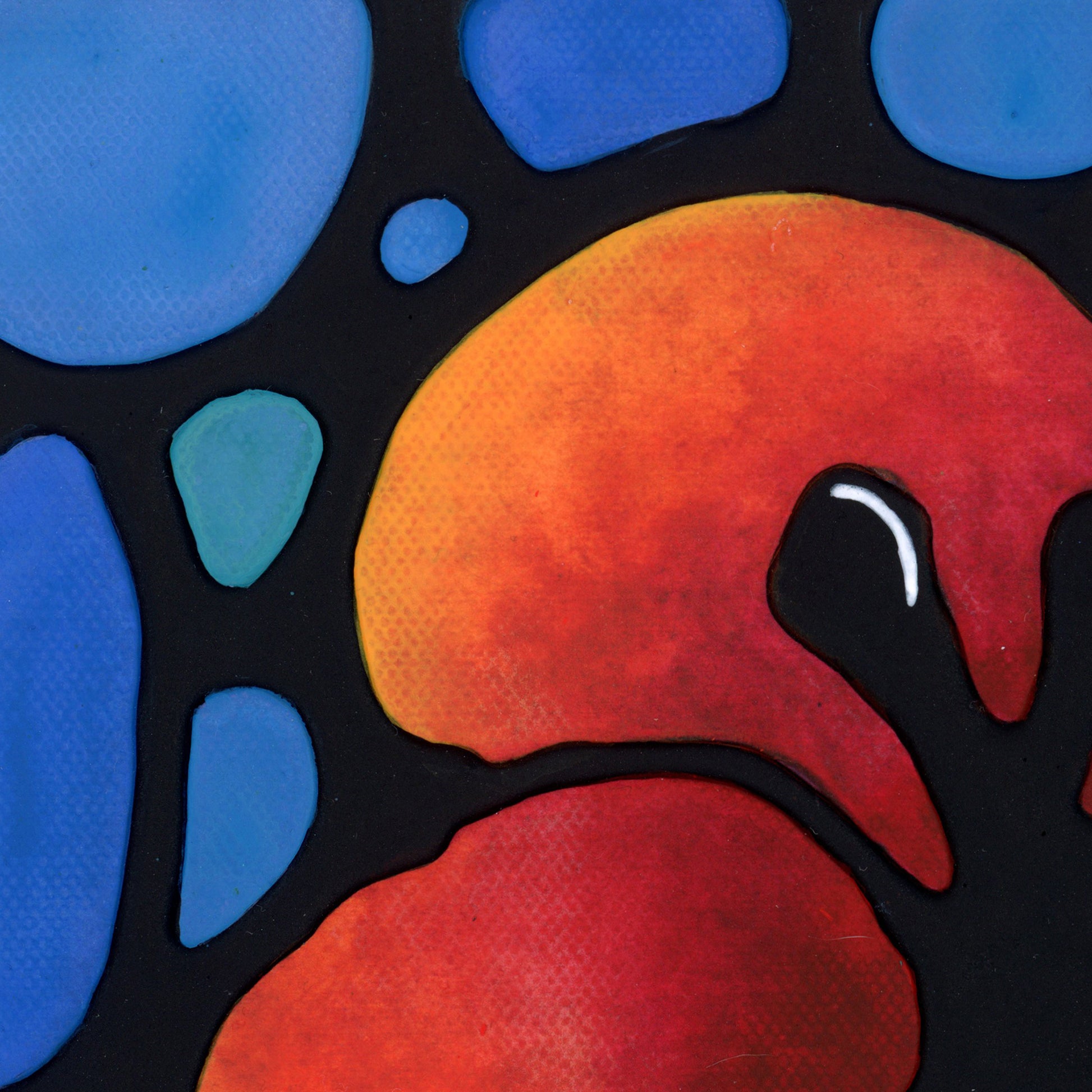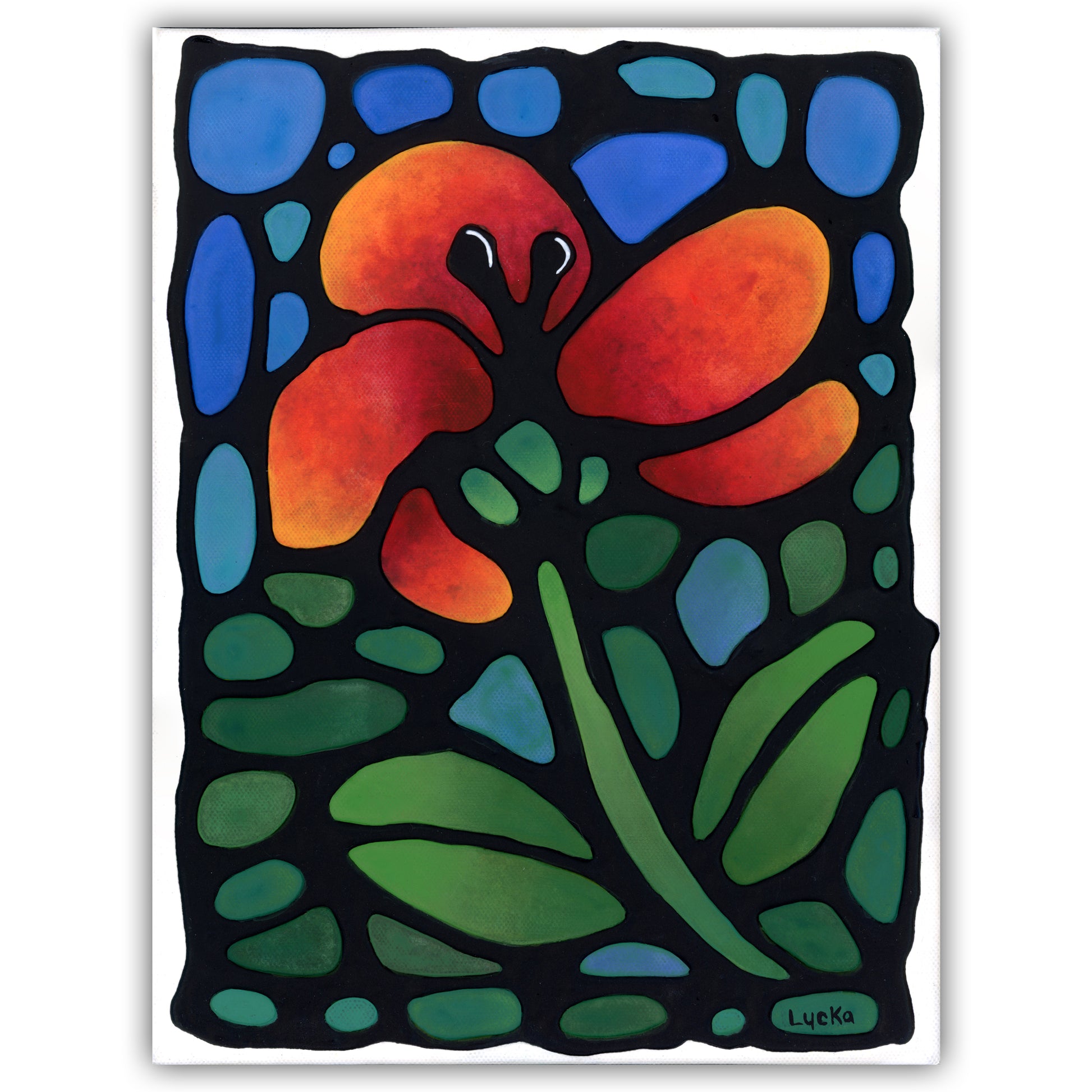 Bright red and yellow poppy flower original acrylic painting on canvas. The poppy can be seen as a symbol of imagination, messages delivered in mysterious dreams, beauty, success, luxury, extravagance, and even peace in death.