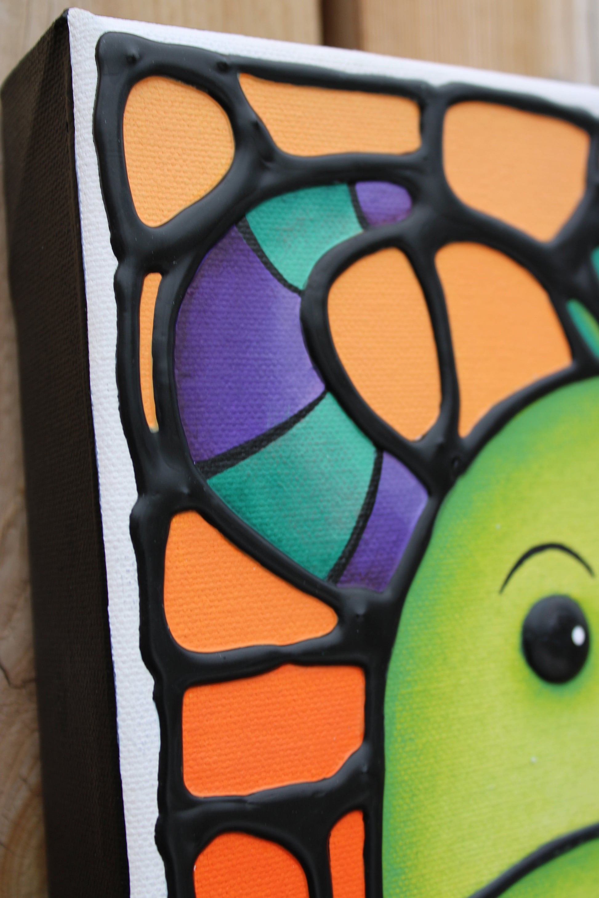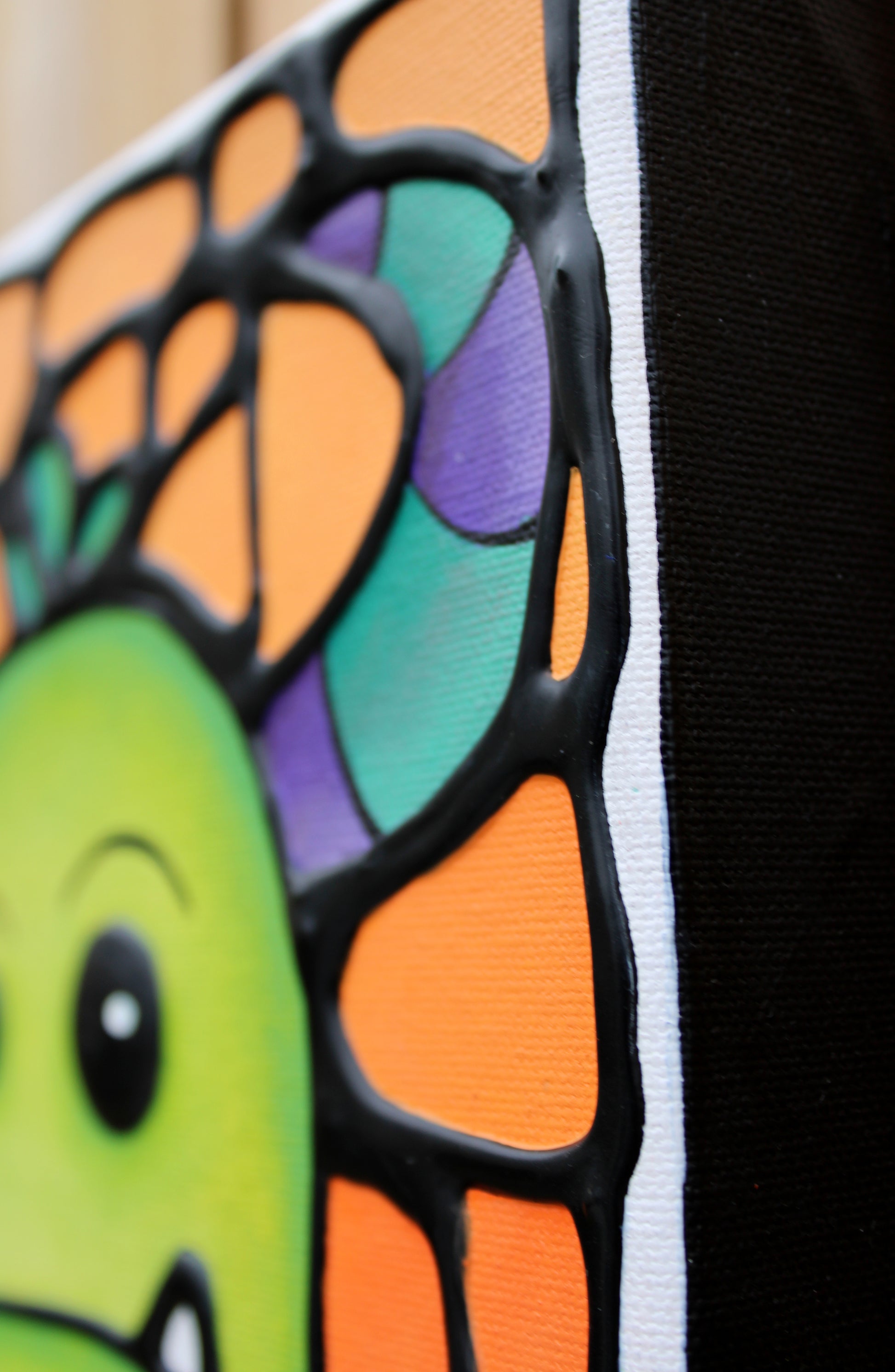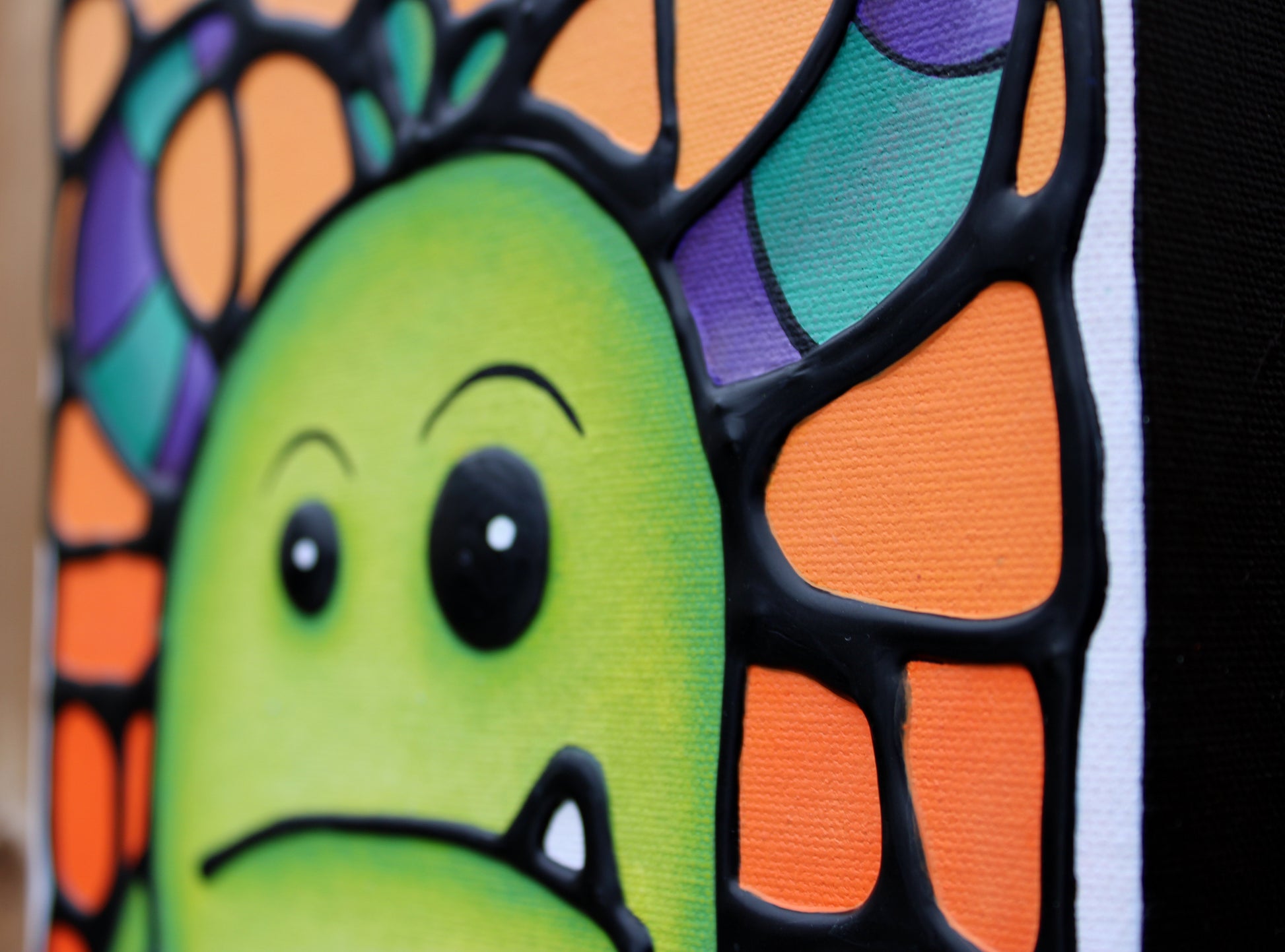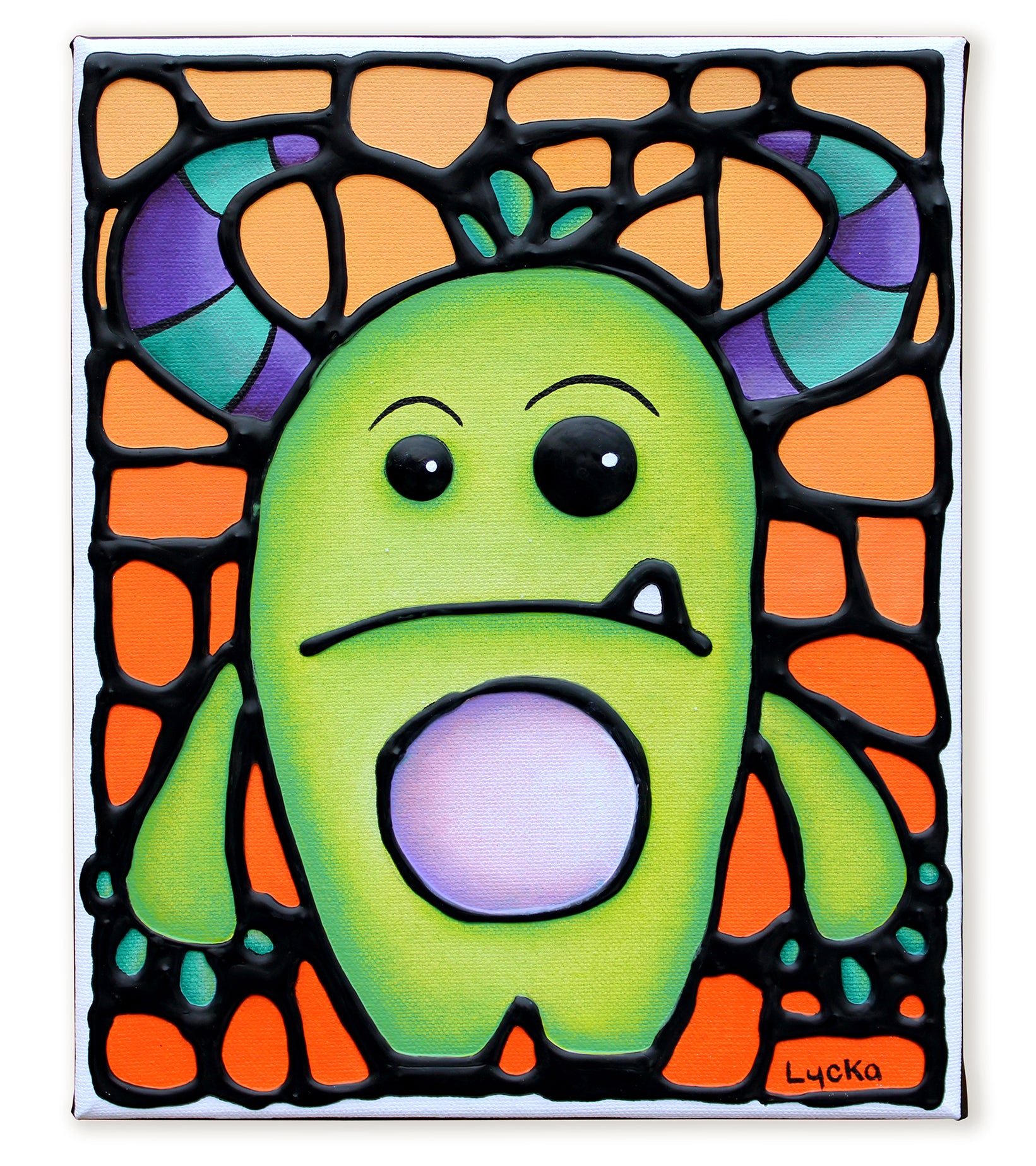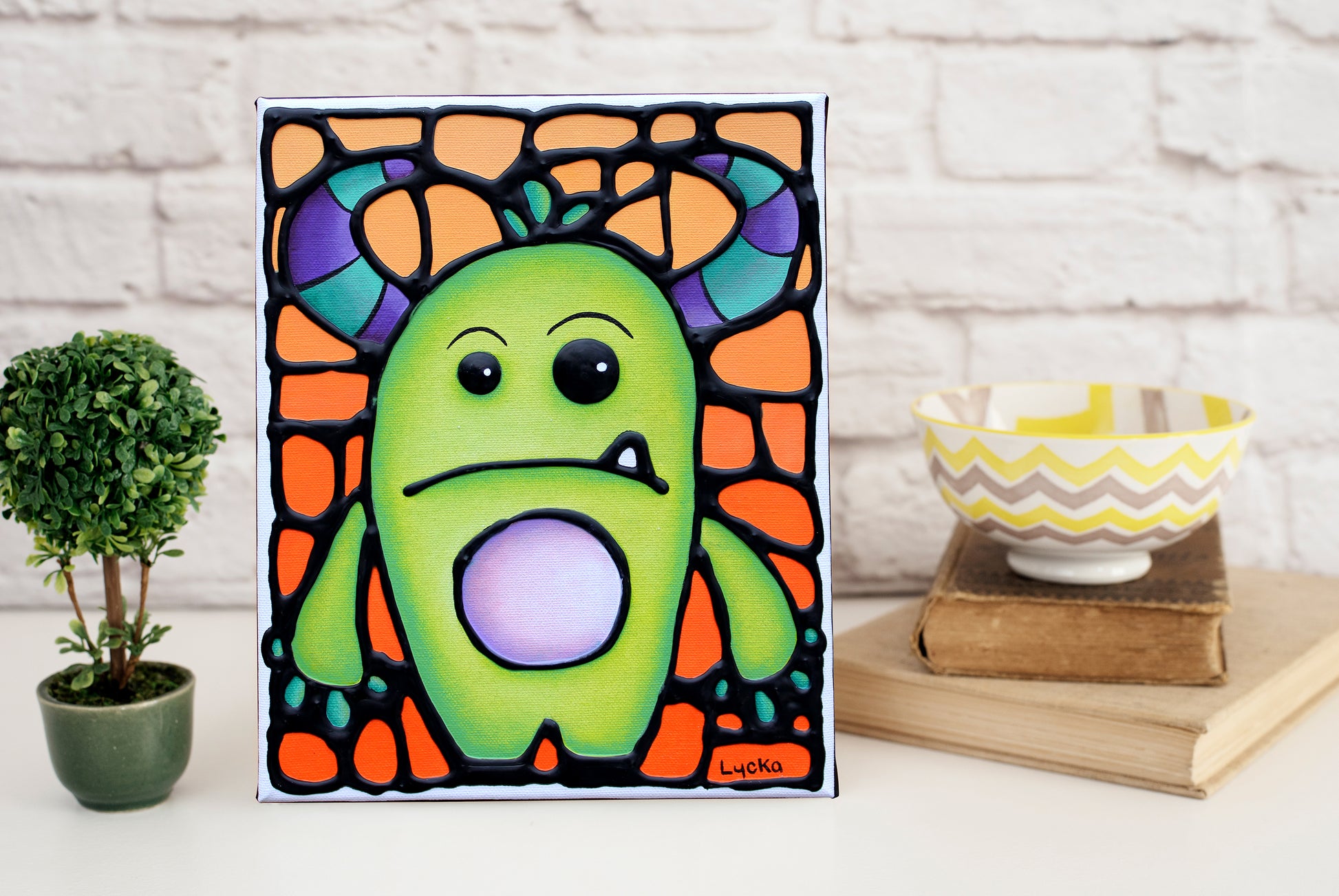 Cute grumpy monster original acrylic painting on canvas (one-of-a-kind). Makes a great birthday gift idea.
