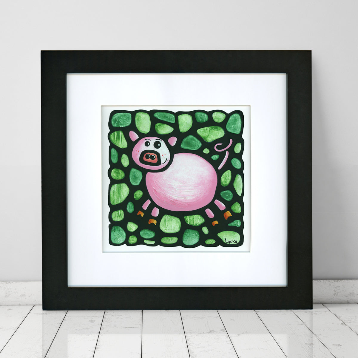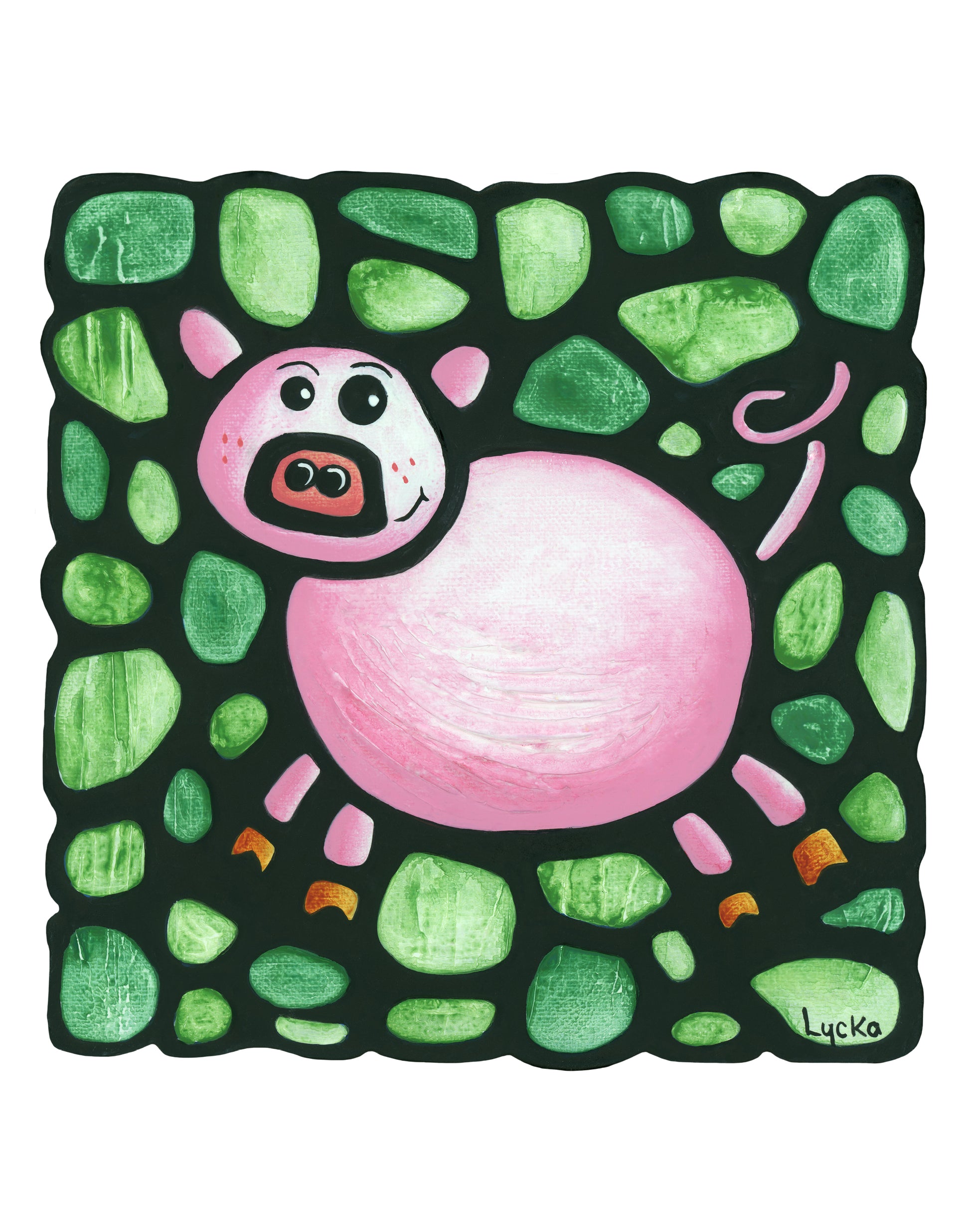Piggy wall art print featuring my original acrylic painting. A playful and heartwarming piece that brings charm to any space. Perfect for animal lovers and collectors alike.