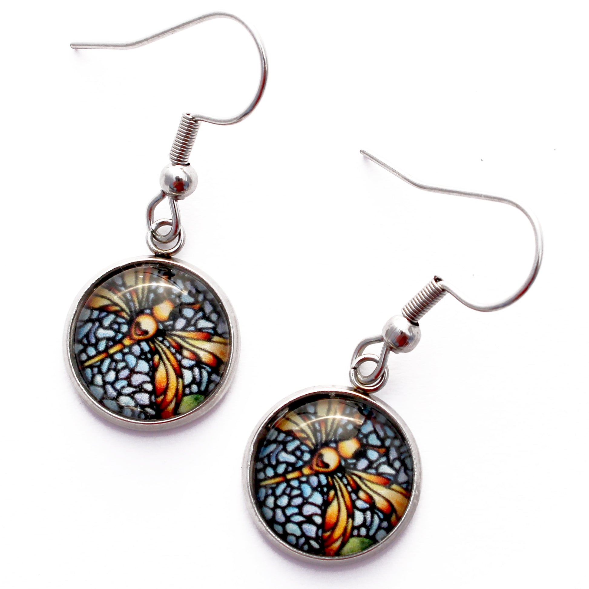 These circle earrings feature a graceful dragonfly on a soft blue background, taken from my original acrylic painting. Lightweight and full of charm, they capture the quiet magic of a summer garden. A perfect choice for nature lovers and those drawn to the beauty of tiny winged things.