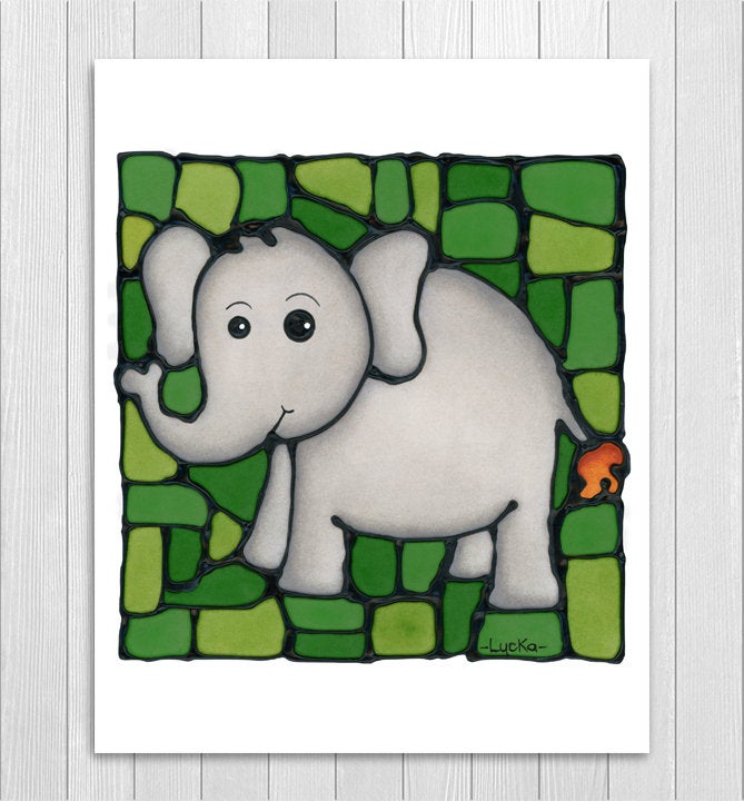 Elephant wall art print featuring my original acrylic painting. A quirky gift for animal lovers and fans of gentle giants with big personalities.