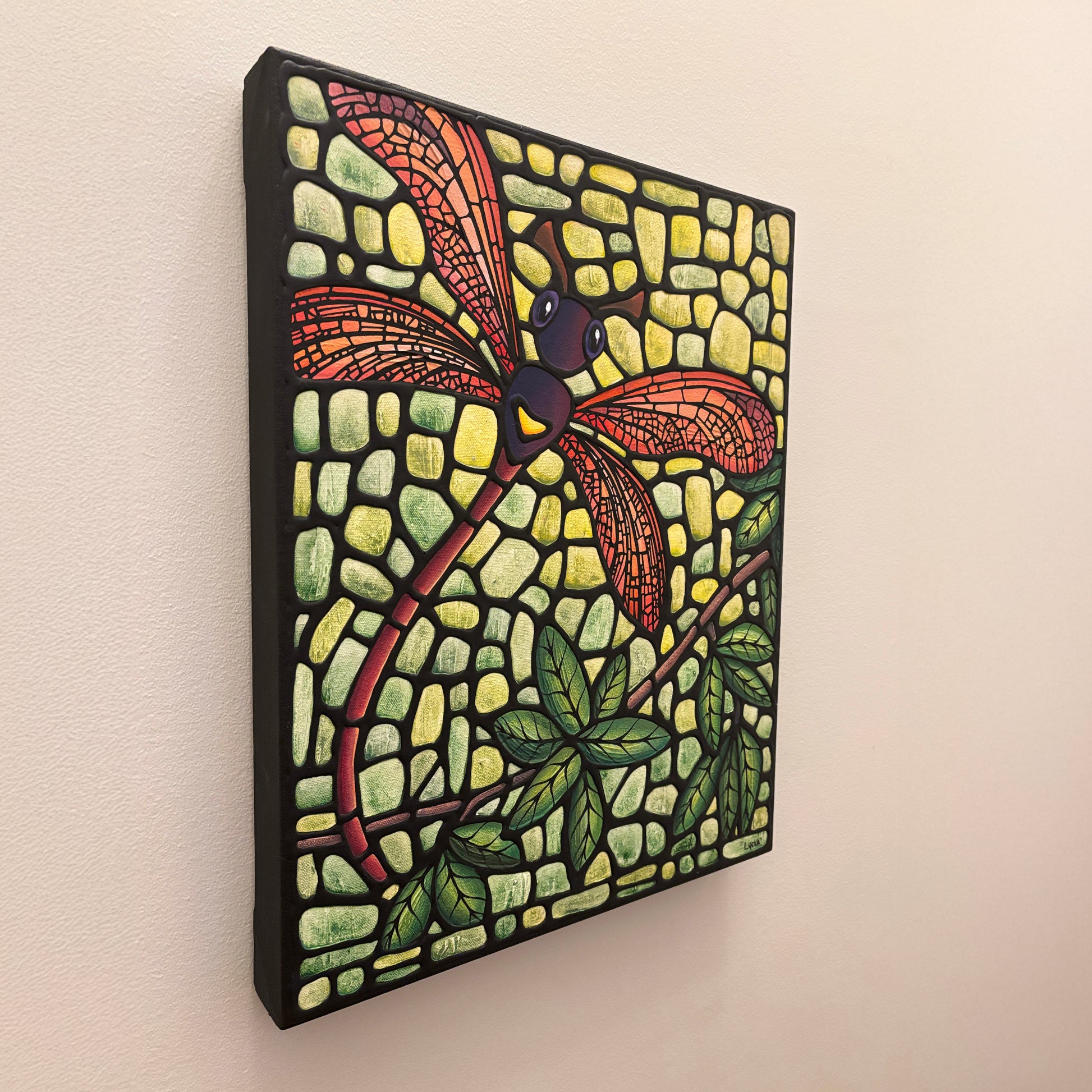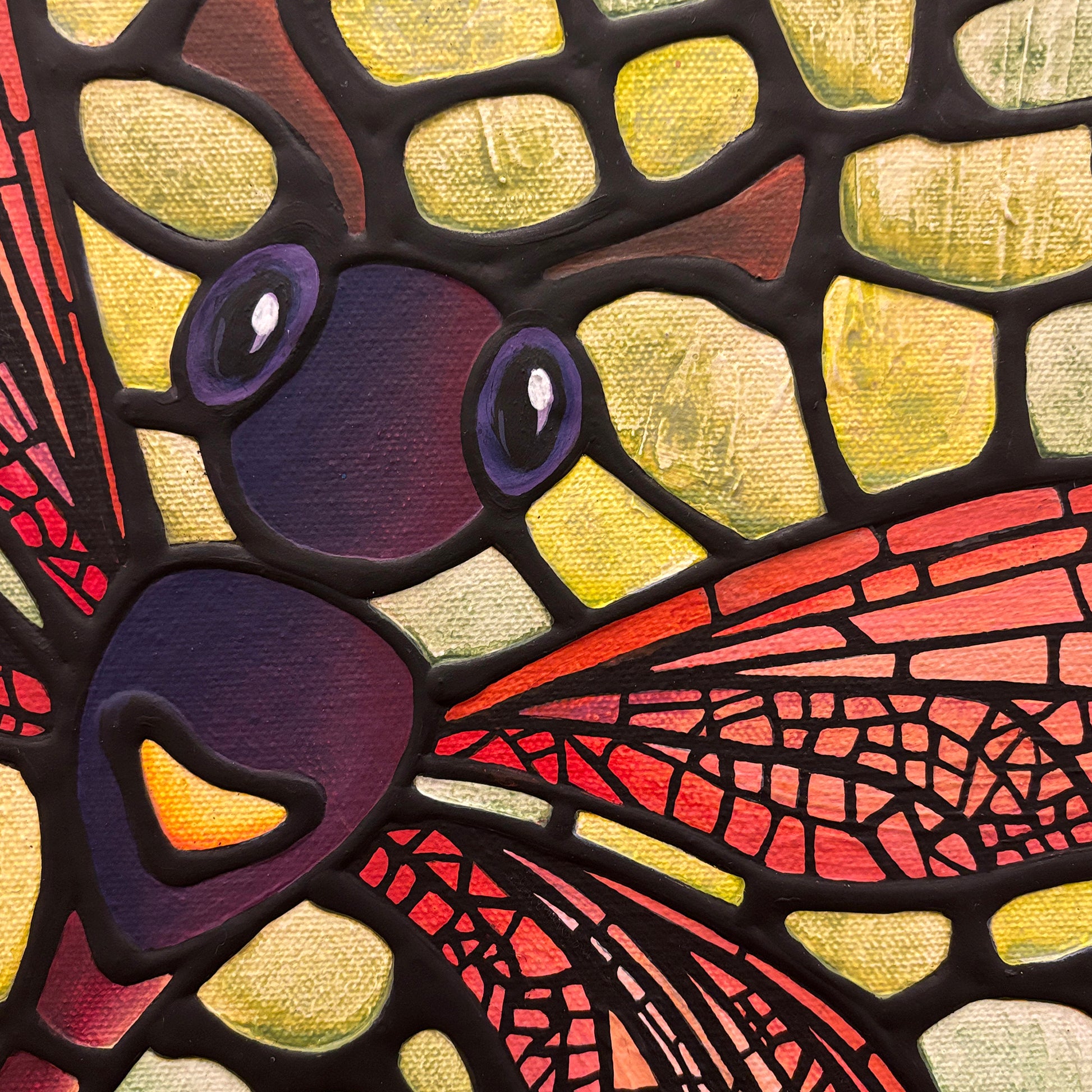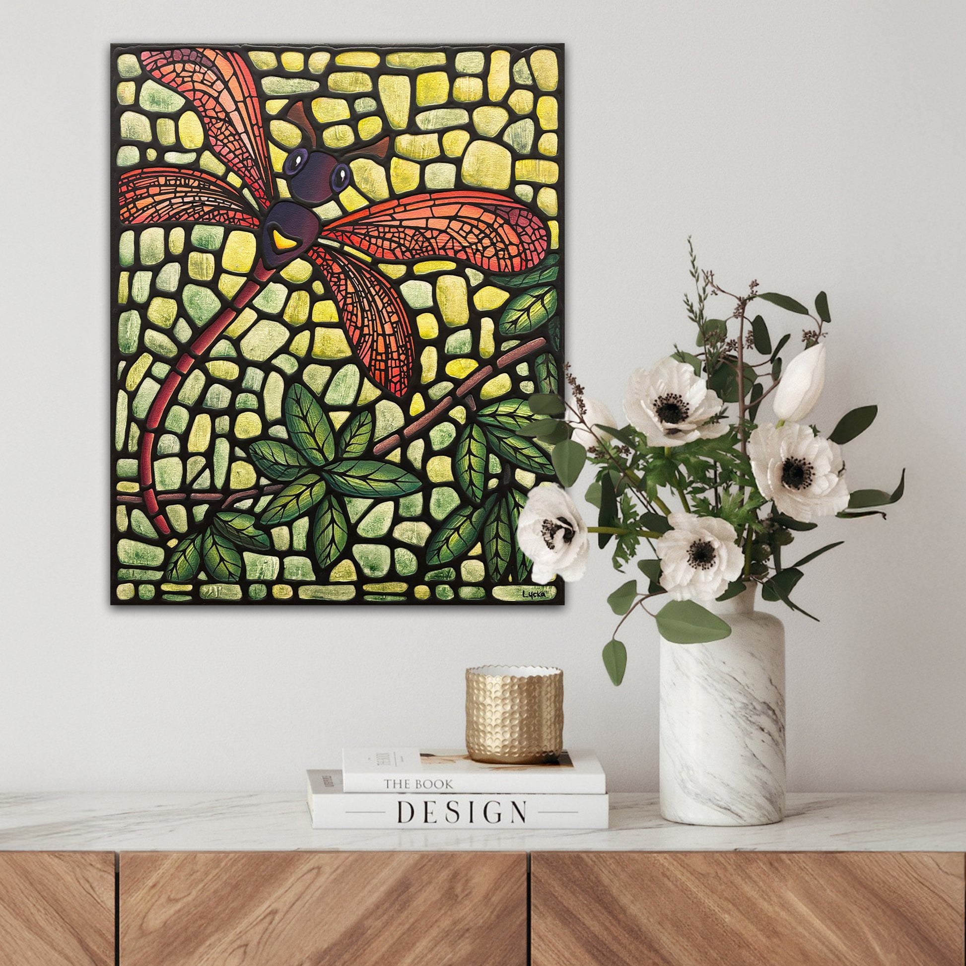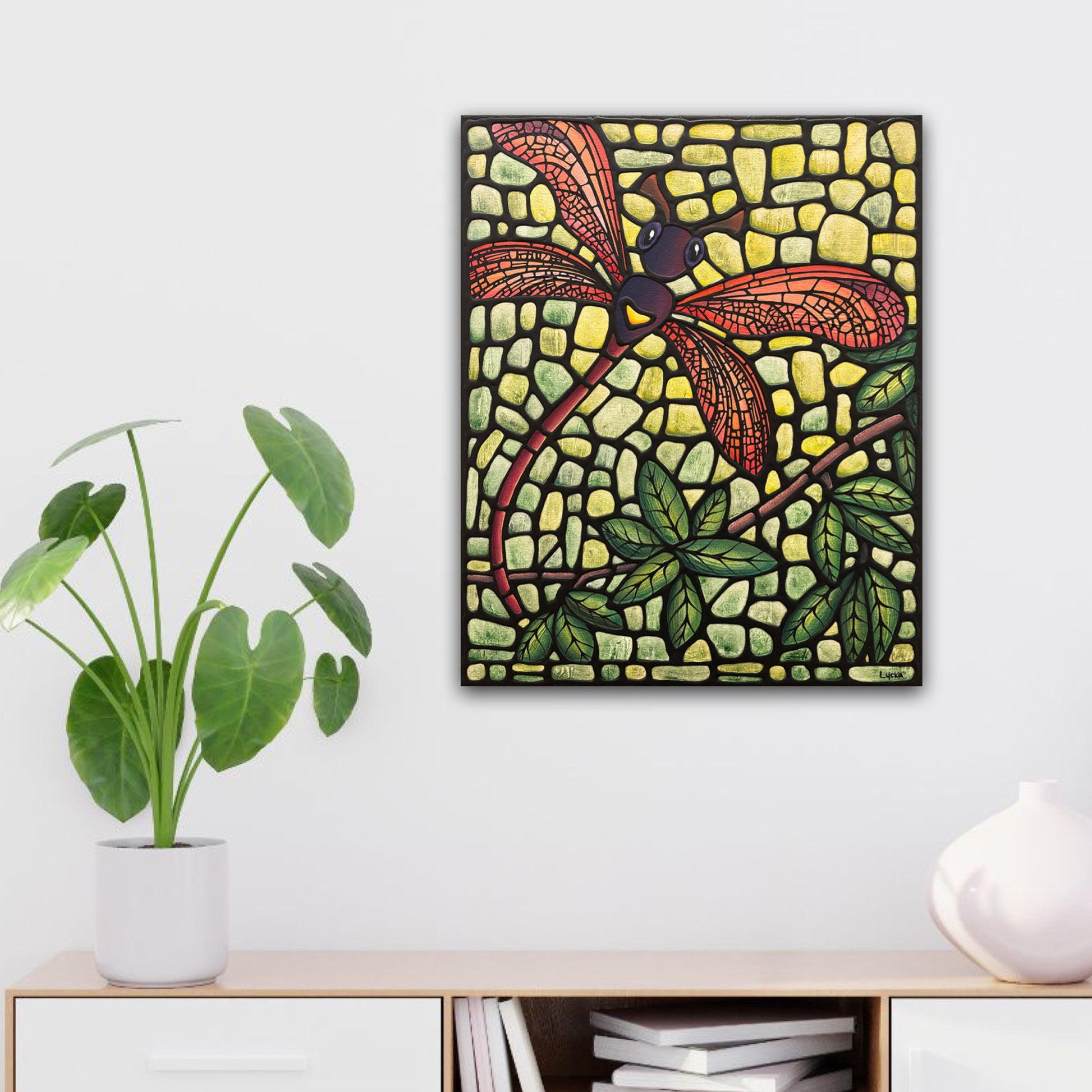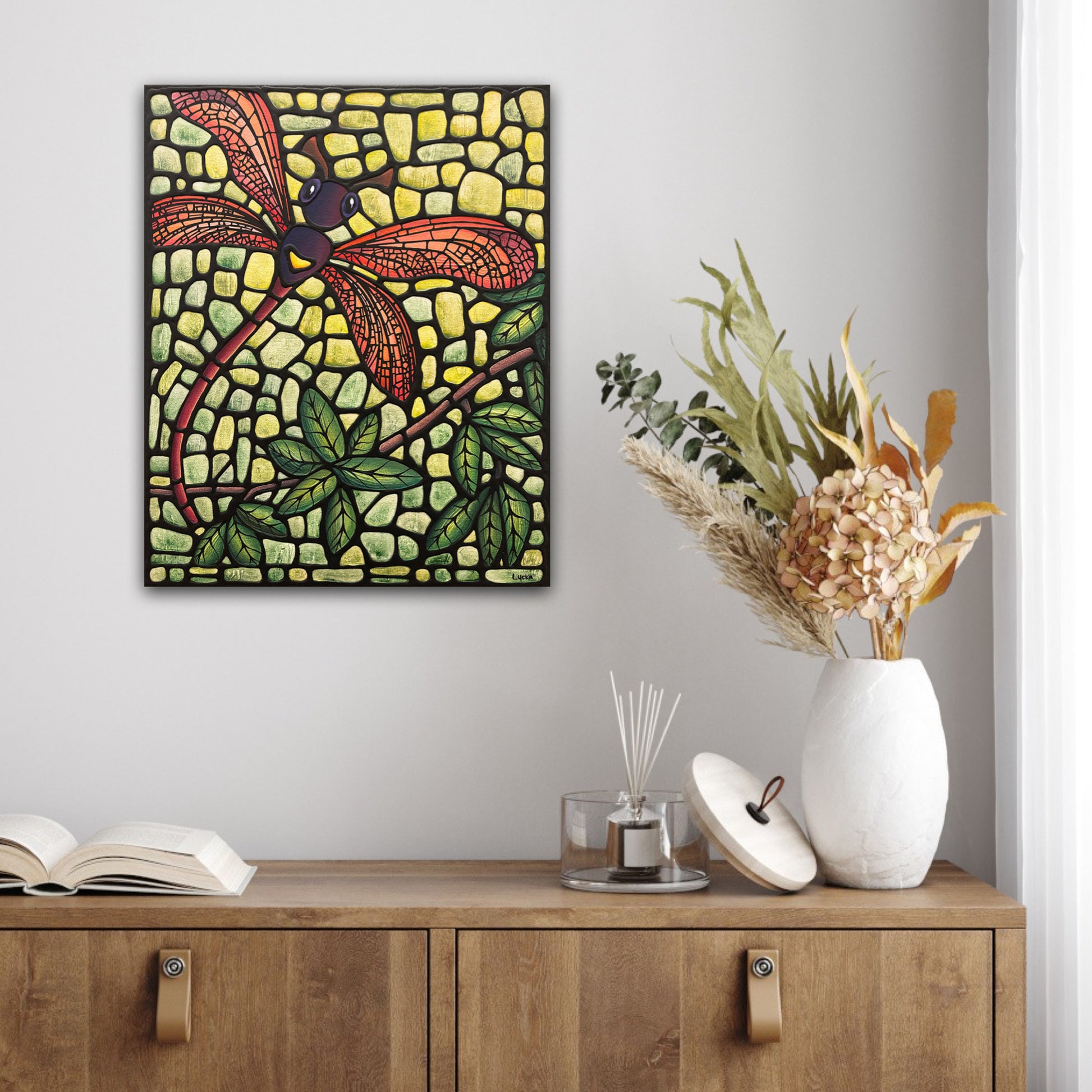 Bring a sense of transformation, harmony, and joy into your space with this radiant dragonfly painting. Symbolizing peace, happiness, and personal growth, the dragonfly reminds us of our ability to overcome challenges and embrace change with grace. Its luminous wings, rendered in a stained glass inspired style, seem to dance with light and life, offering a daily reminder to stay present, balanced, and resilient.