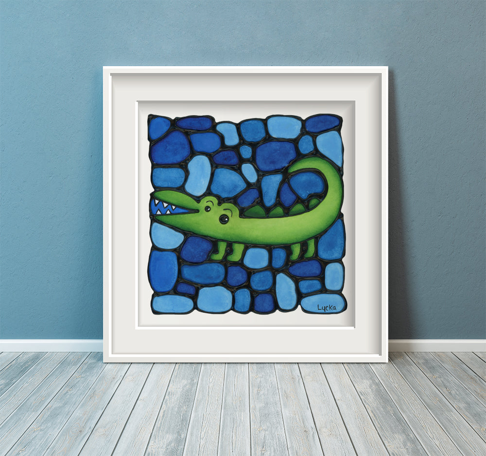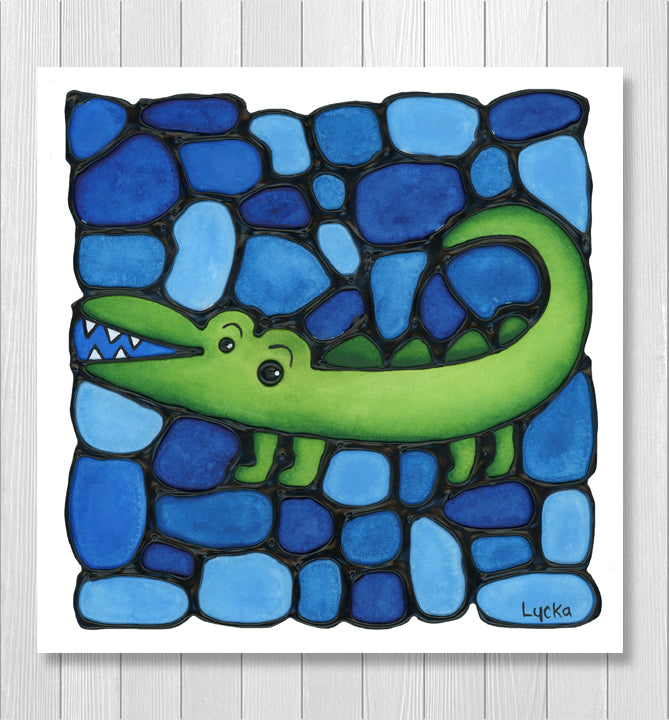 Gator art print featuring my original acrylic painting. A bold gift for ocean lovers and fans of sea life with a bite of adventure.