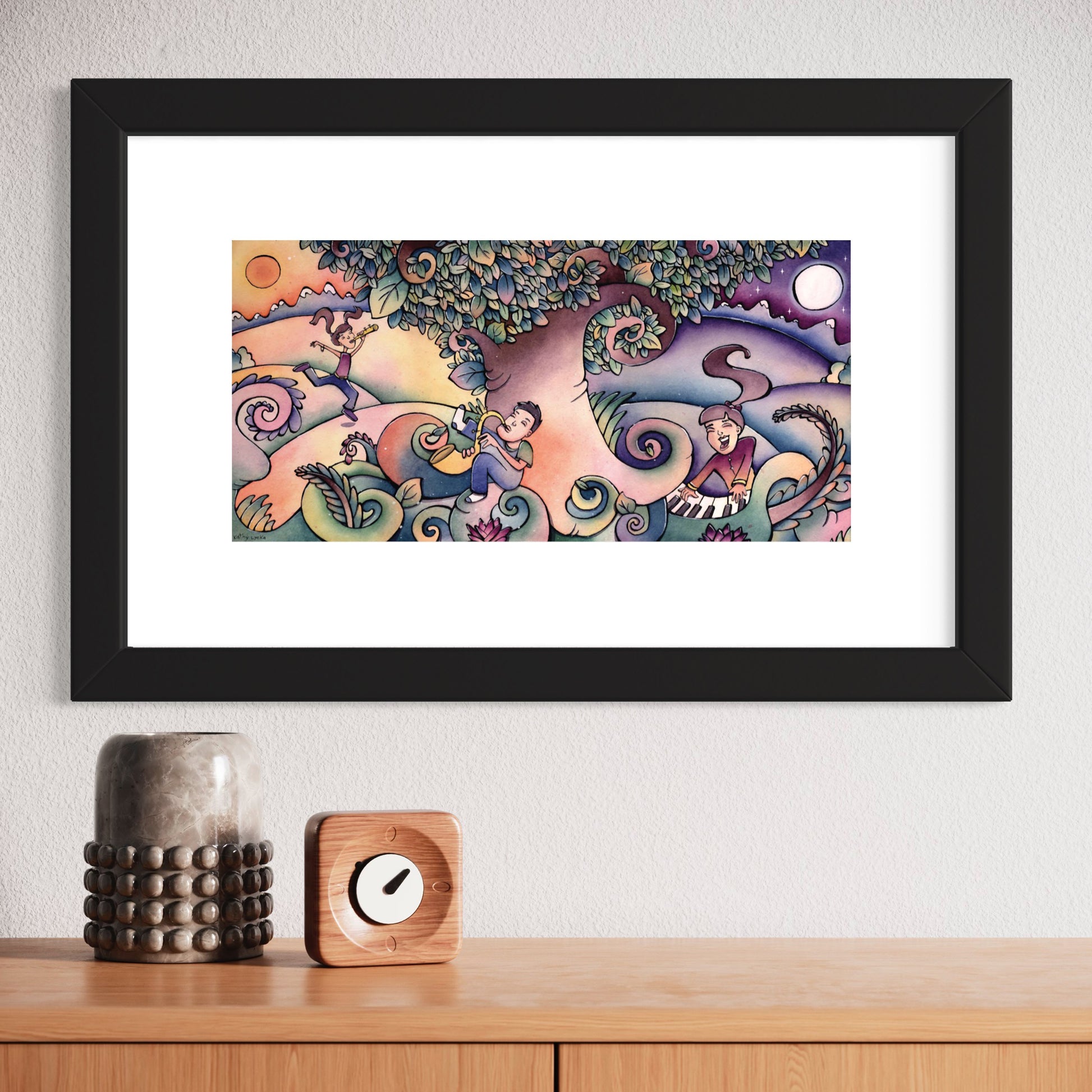 I originally created this piece as an magazine editorial illustration representing a story about the healing and music program at the Alberta Children's Hospital. Displaying the excitement and joy of creating music in nature.