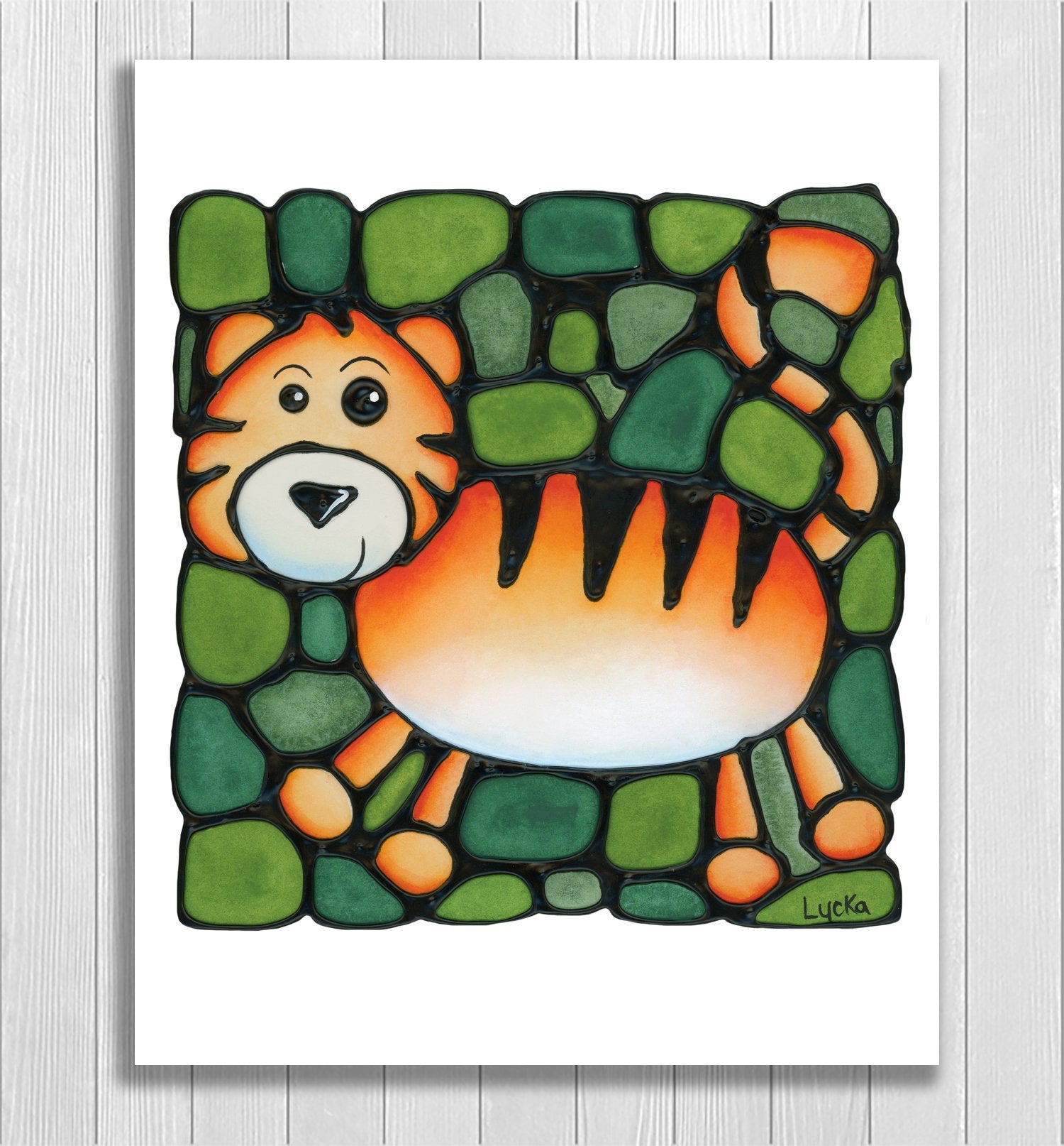 Jungle Animal Set of 4 Prints, Monkey, Lion, Giraffe, Tiger