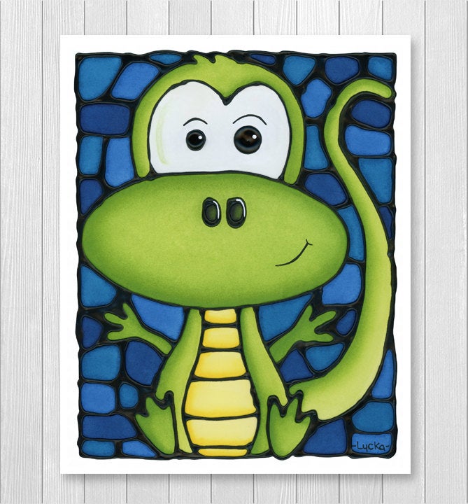 Cute lizard wall art print for a nursery or a kids' bedroom. Makes a great baby shower gift idea.