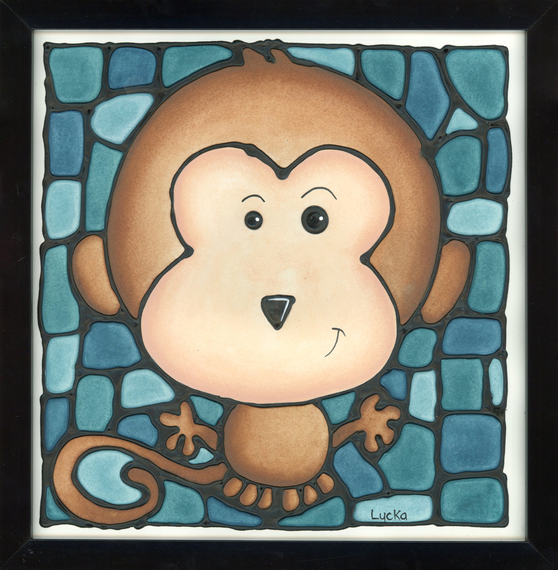 Monkey (Teal) Original Painting 13" x 13" Framed