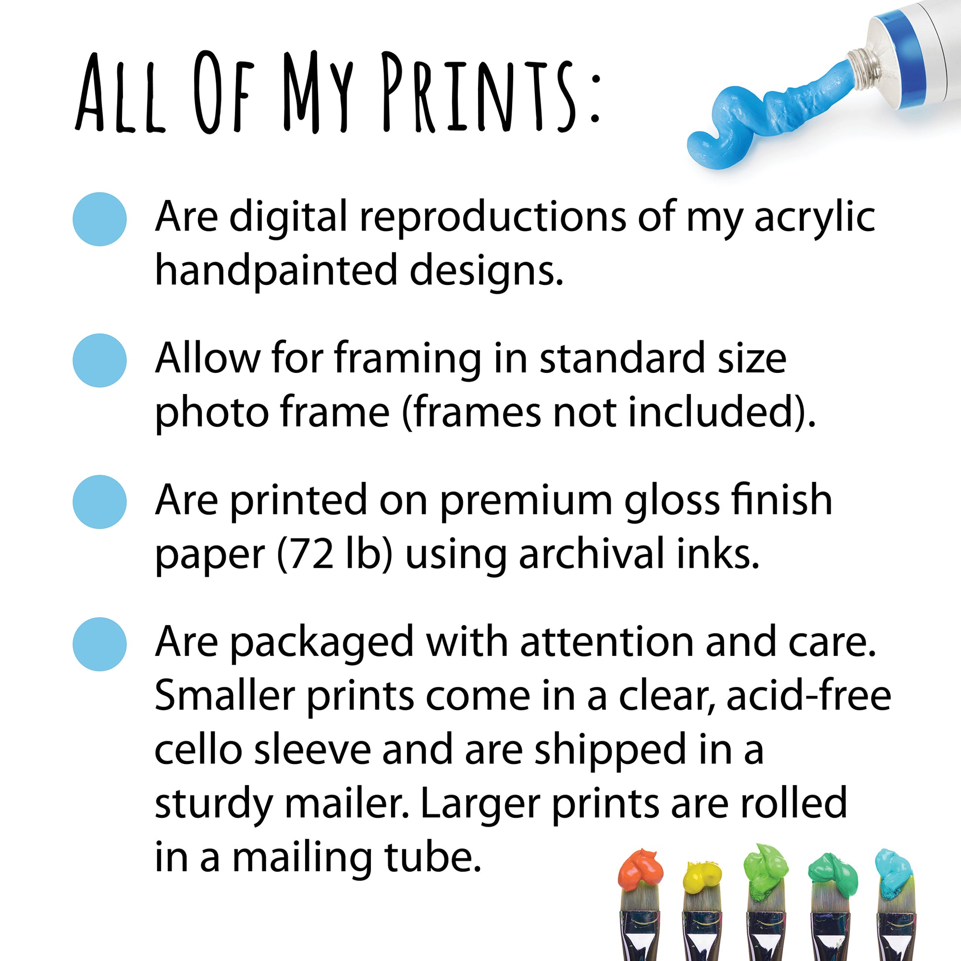 My gallery-quality prints are printed on the very best, artisan papers with archival inks. They are indiscernible from the original painting.