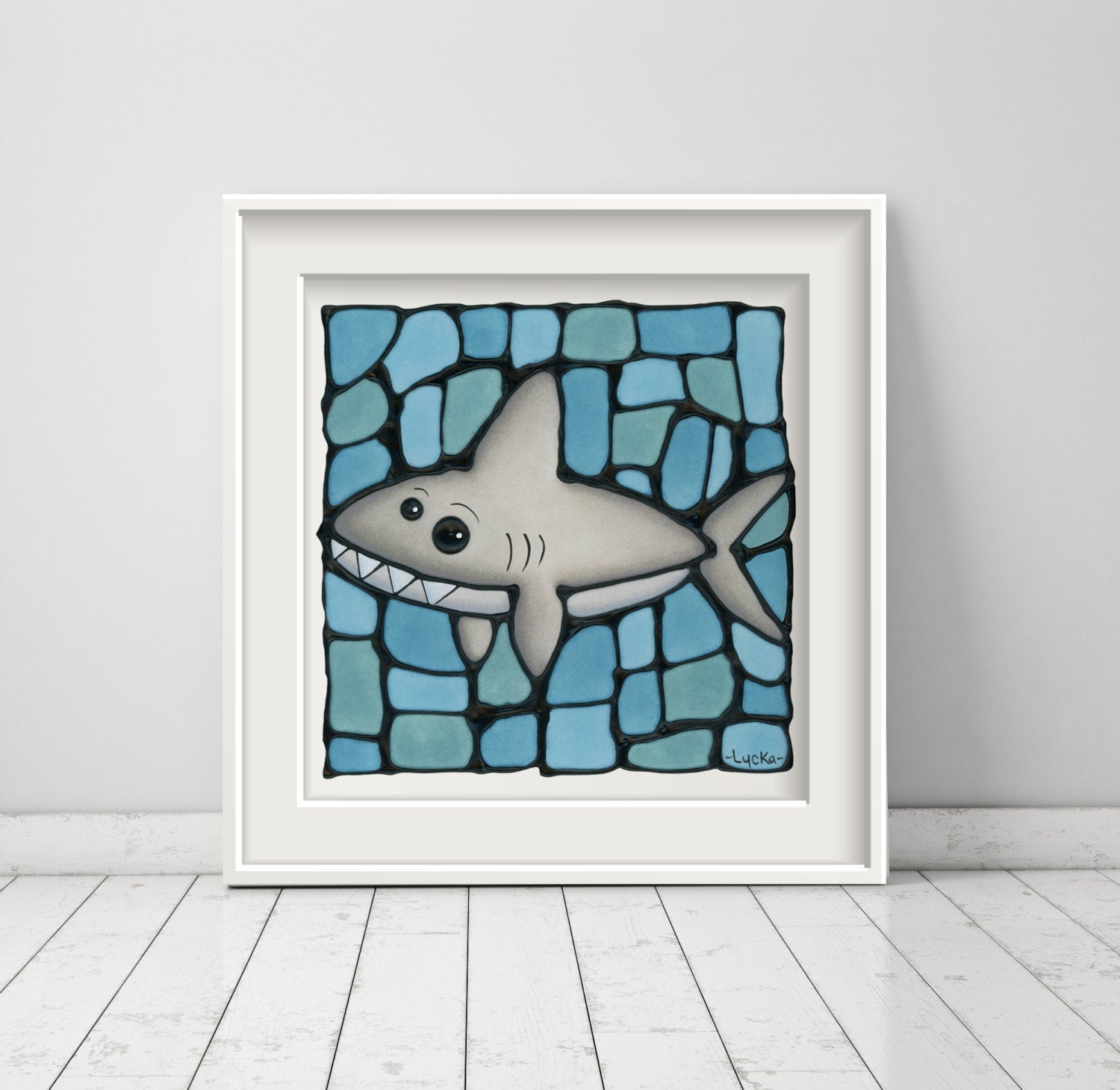 Shark wall art print featuring my original acrylic painting. A bold gift for ocean lovers and fans of sea life with a bite of adventure.