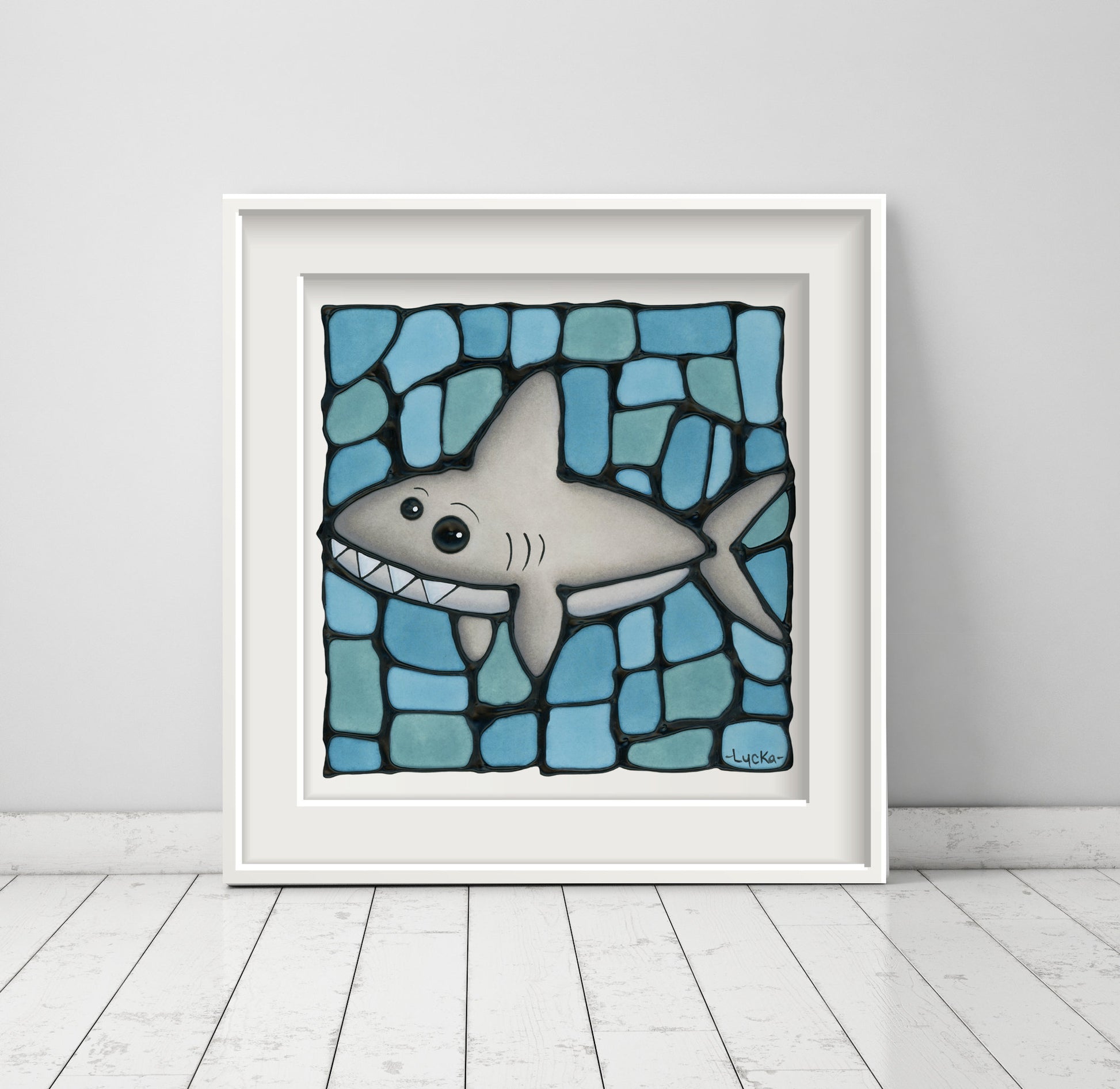 Shark, crab and whale art print featuring my original acrylic painting. A bold gift for ocean lovers and fans of sea life with a bite of adventure.