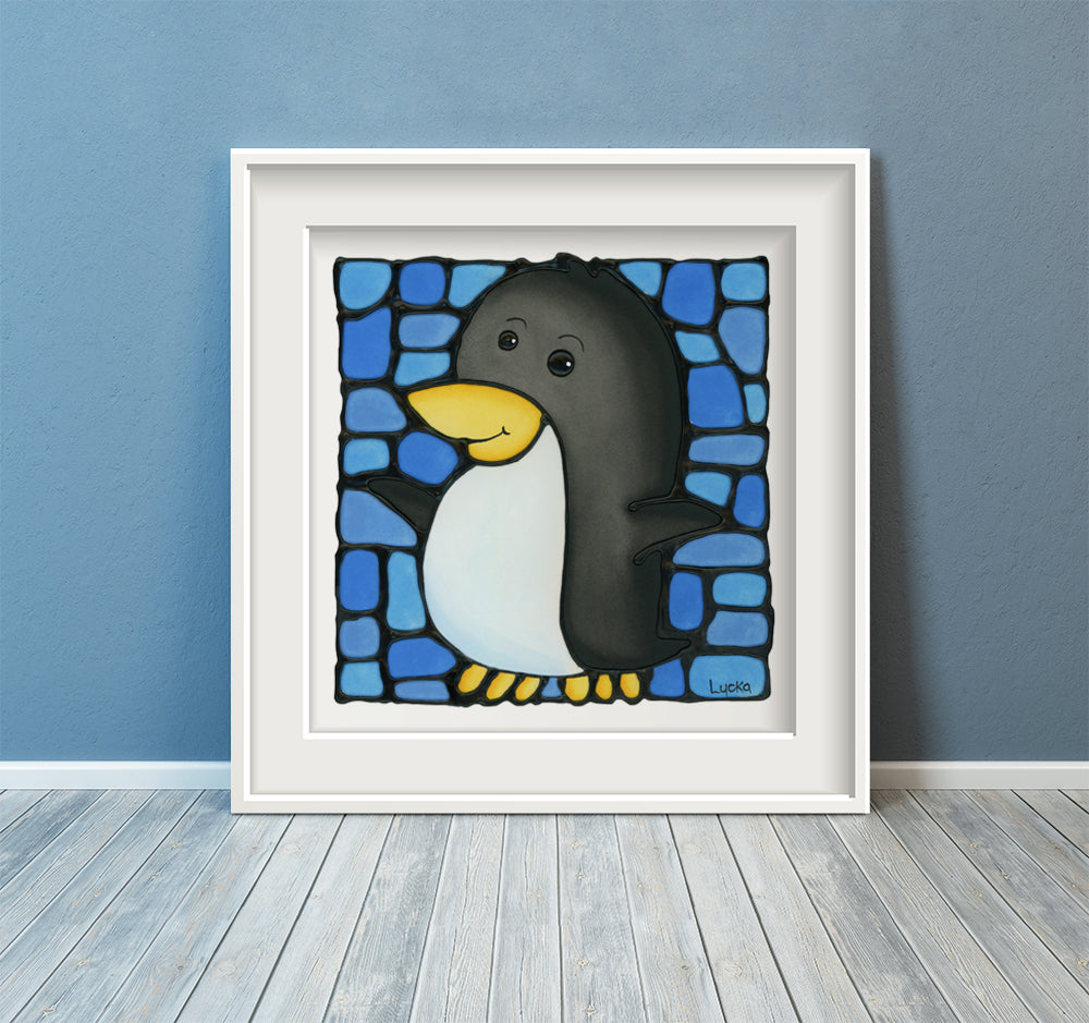 Penguin art print featuring my original acrylic painting. A bold gift for ocean lovers and fans of sea life with a bite of adventure.