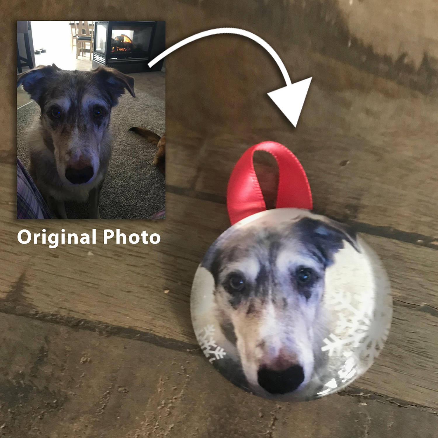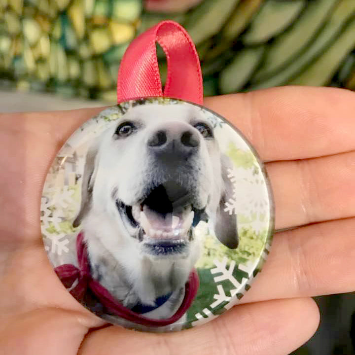Capture the heartwarming bond you share with your pet in a personalized photo ornament, crafted just for you. This timeless keepsake transforms cherished memories into a beautiful piece of art, ensuring your beloved companion is always close, year after year. A thoughtful way to honour the love that never fades.