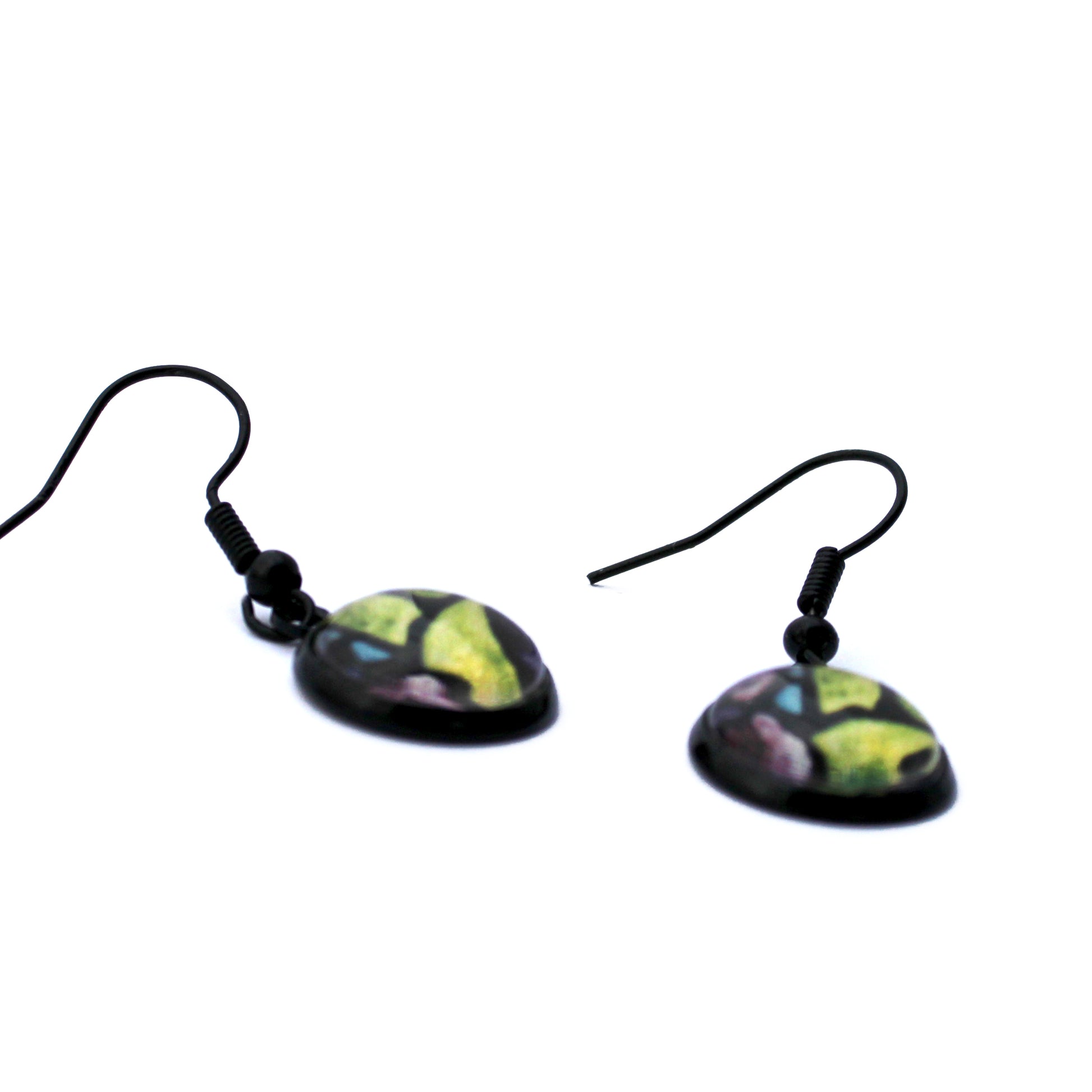 Add a touch of elegance with these purple iris earrings, featuring artwork from my original acrylic painting. Encased in a sleek round setting, each piece is like a tiny stained-glass garden you can wear. Lightweight and full of colour, they're perfect for flower lovers and art enthusiasts alike.