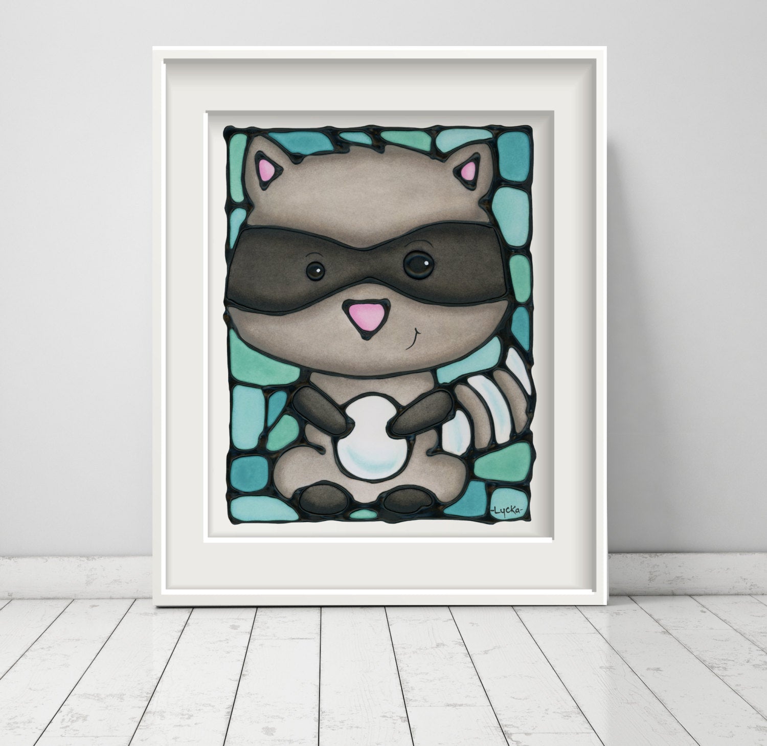 This listing is for an artisan quality print, from my original acrylic painting of a cute raccoon.