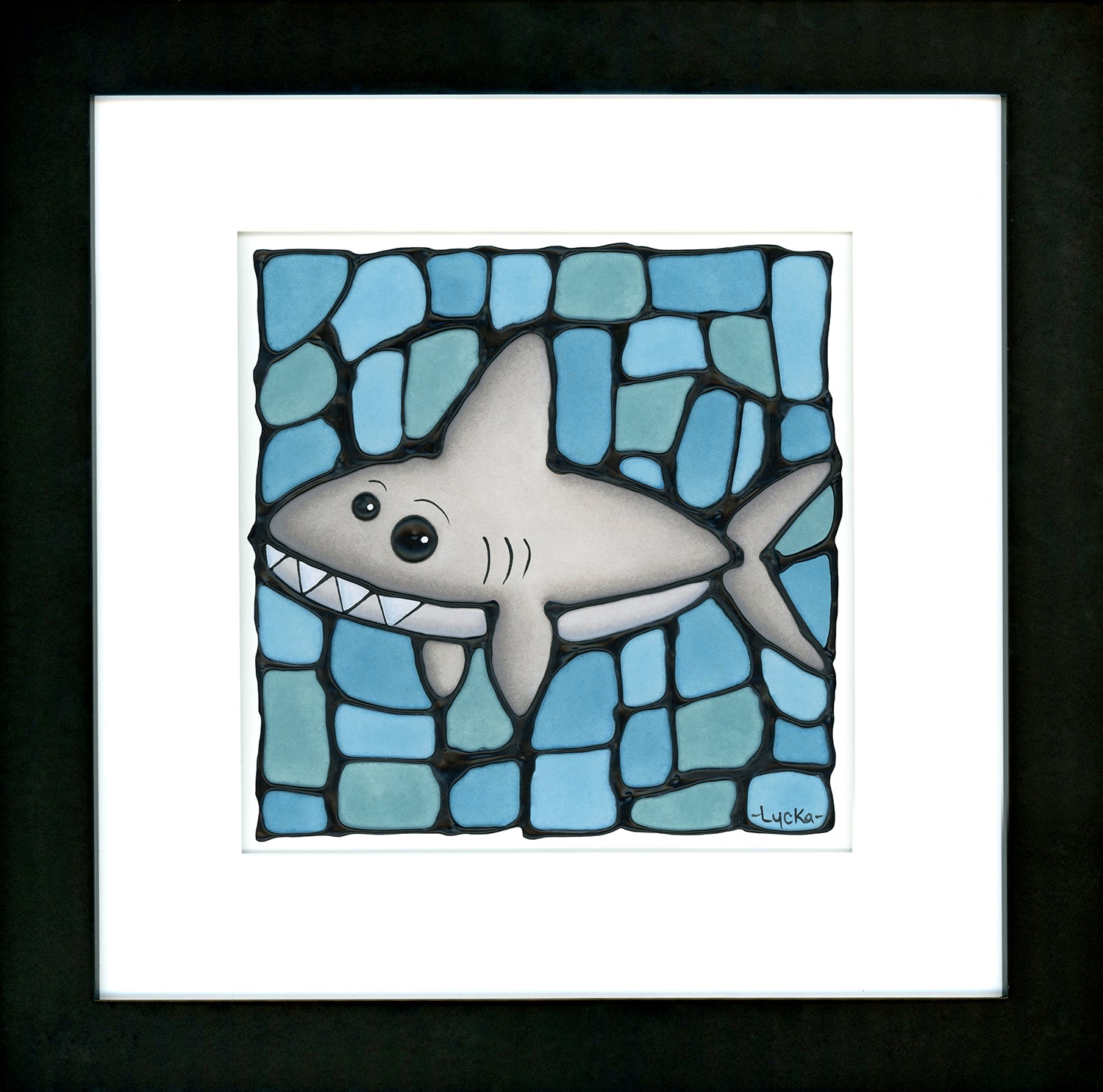 Shark Original Painting 14" x 14" Framed