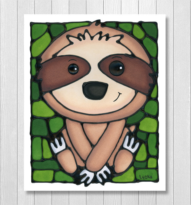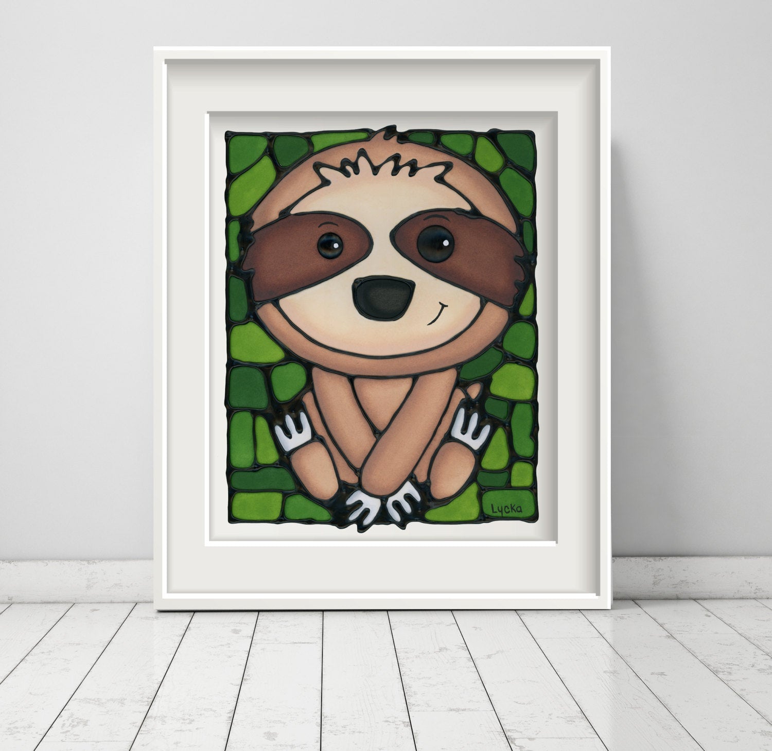 Sloth wall art print featuring my original acrylic painting. A charming gift for animal lovers and fans of slow days, sweet faces, and laid-back jungle vibes.