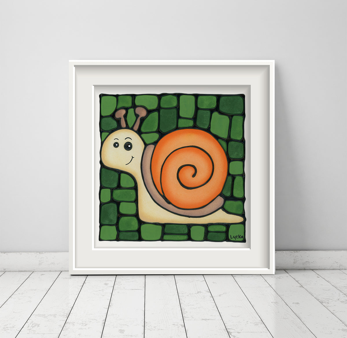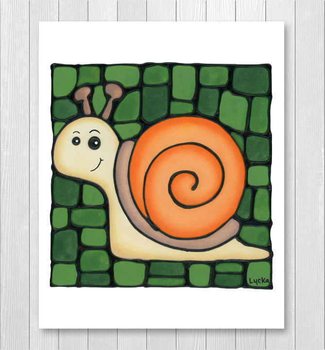 Snail wall art print for a nursery or a kids' bedroom. Makes a great baby shower gift idea.