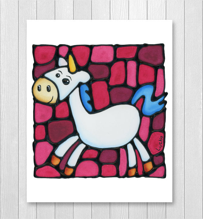 Unicorn wall art print for a nursery or a kids' bedroom. Makes a perfect baby shower gift idea.