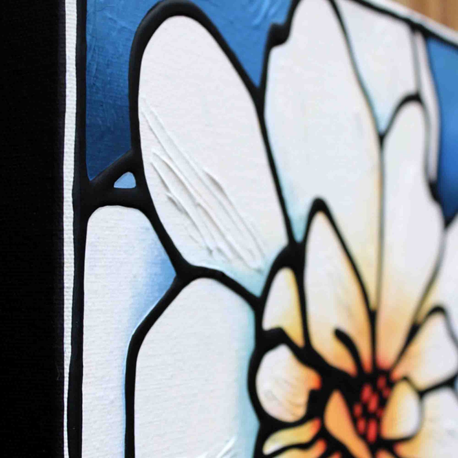 Glowing white begonia flower original acrylic painting on canvas.