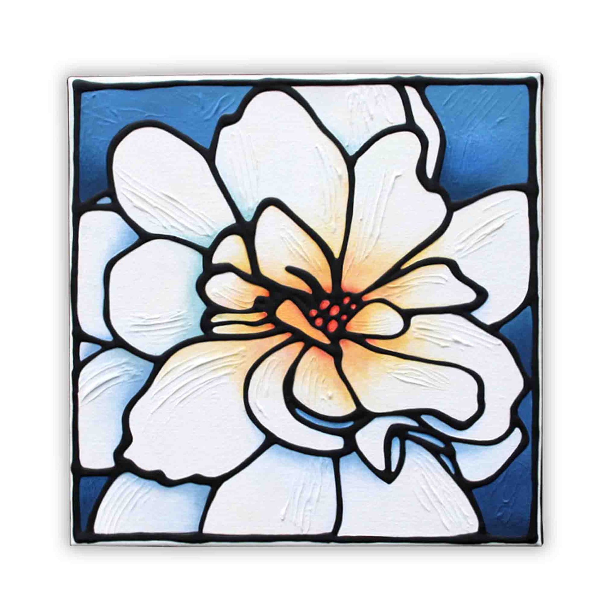 White Begonia Flower Original Painting 12" x 12" inch