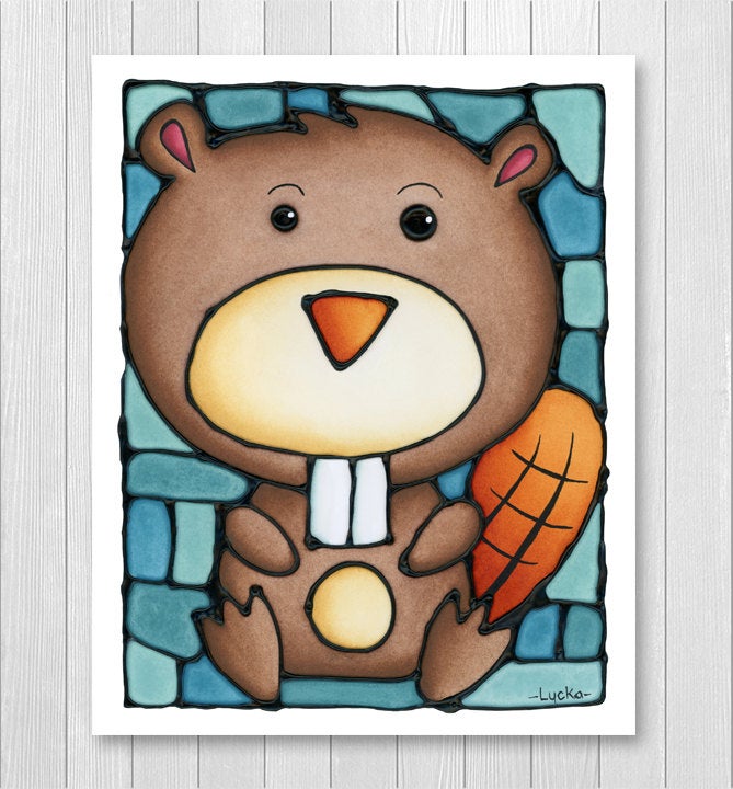 This listing is for an artisan quality print, from my original acrylic painting of a cute fox, raccoon, moose and beaver.